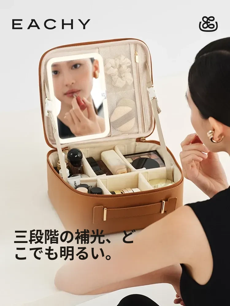 リズオ LED鏡付き化粧ボックス 大容量化粧品収納 防水旅行用ポーチ 持ち運び便利で女性に最適!おしゃれで実用的なアイテム!