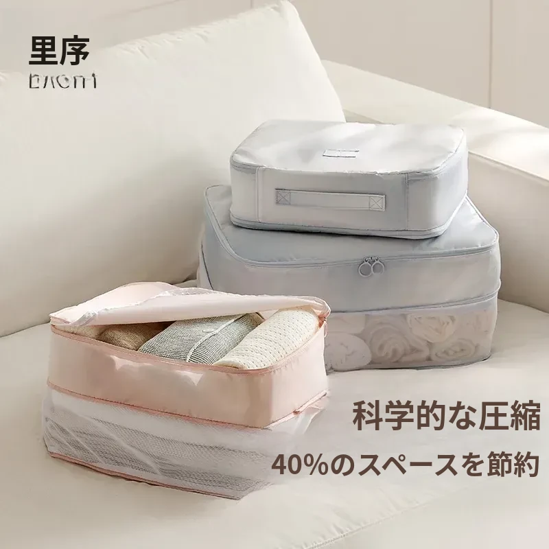 旅行の必需品!里序圧縮収納袋セット - スーツケース内のダウンジャケットや衣類、下着をスッキリ整理!出張や旅行に最適な分け収納で、快適な移動をサポートします。
