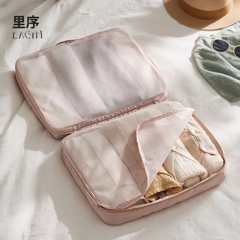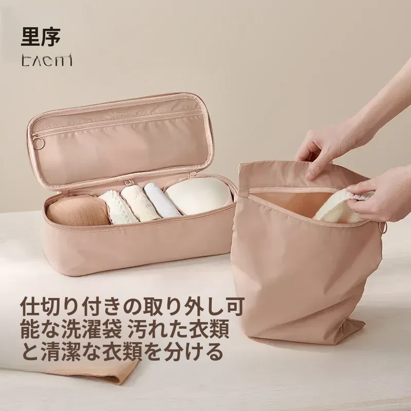 旅行に便利な収納バッグ!キャリーケースをすっきり整理できるトラベルポーチ。衣類や下着を分けて収納し、スムーズな移動をサポート。おしゃれで使いやすいデザインで、旅行がもっと楽しくなる!