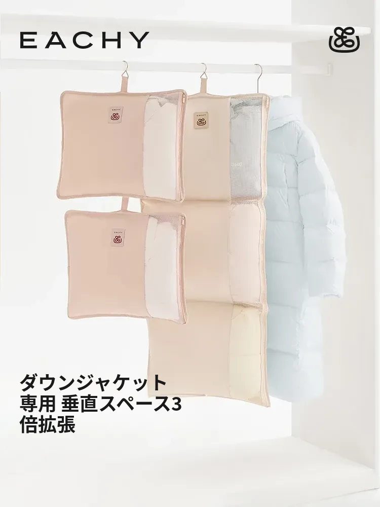 リシュー 持ち運び便利なダウンジャケット収納袋4点セット - 寝室や宿舎に最適な壁掛け収納ハンガー!お部屋をスッキリ整理整頓!
