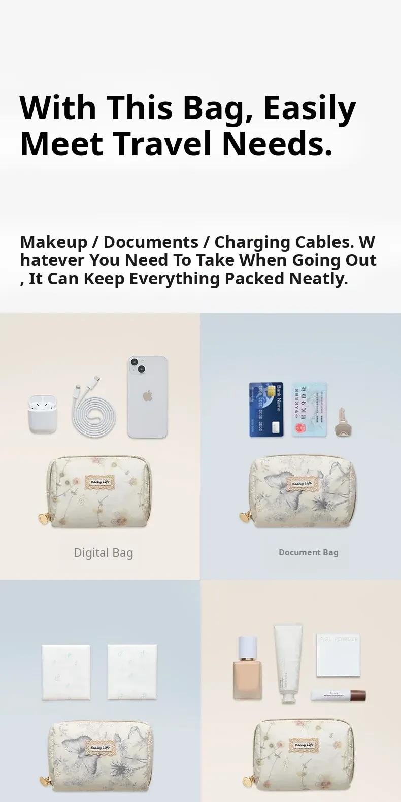 2026 New High-End Portable Makeup Bag for Women - Chic and Luxurious Storage Pouch for Everyday Essentials, Perfect for On-the-Go Touch-Ups and Organization