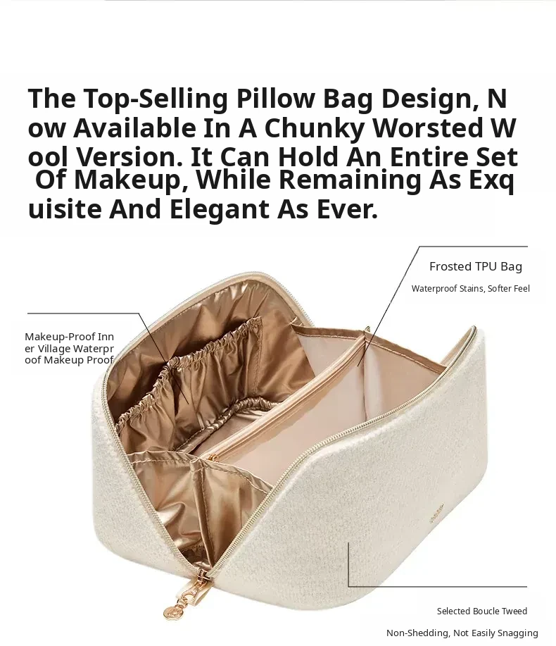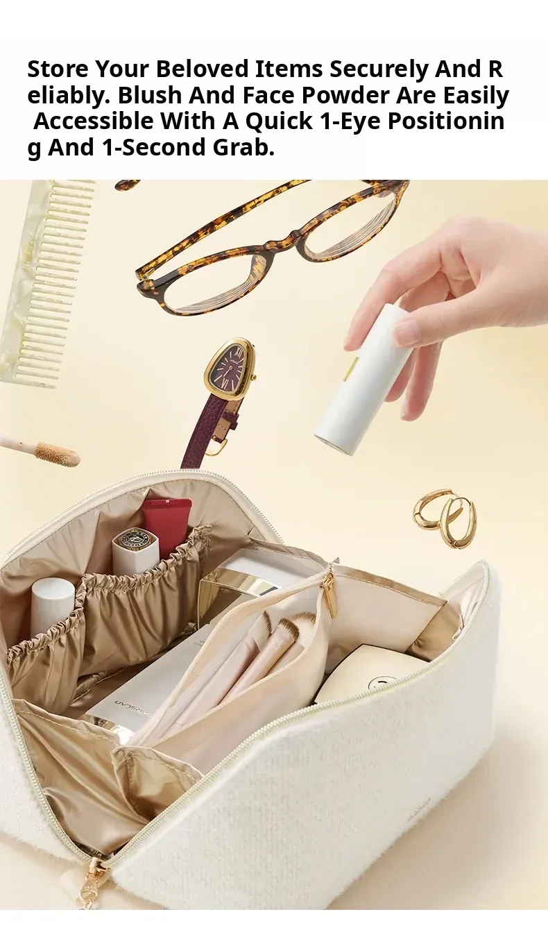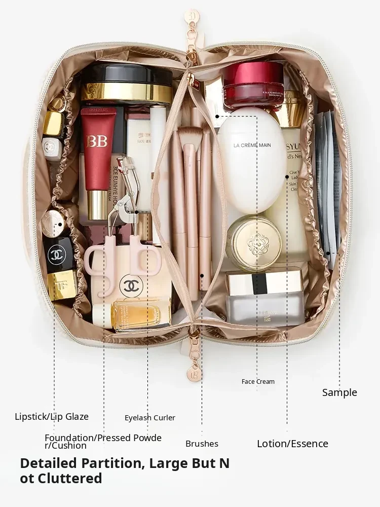 2026 New Large Capacity Makeup Bag for Women - Stylish Cosmetic Organizer with Brush Storage, Portable Toiletry Bag for On-the-Go Beauty Essentials