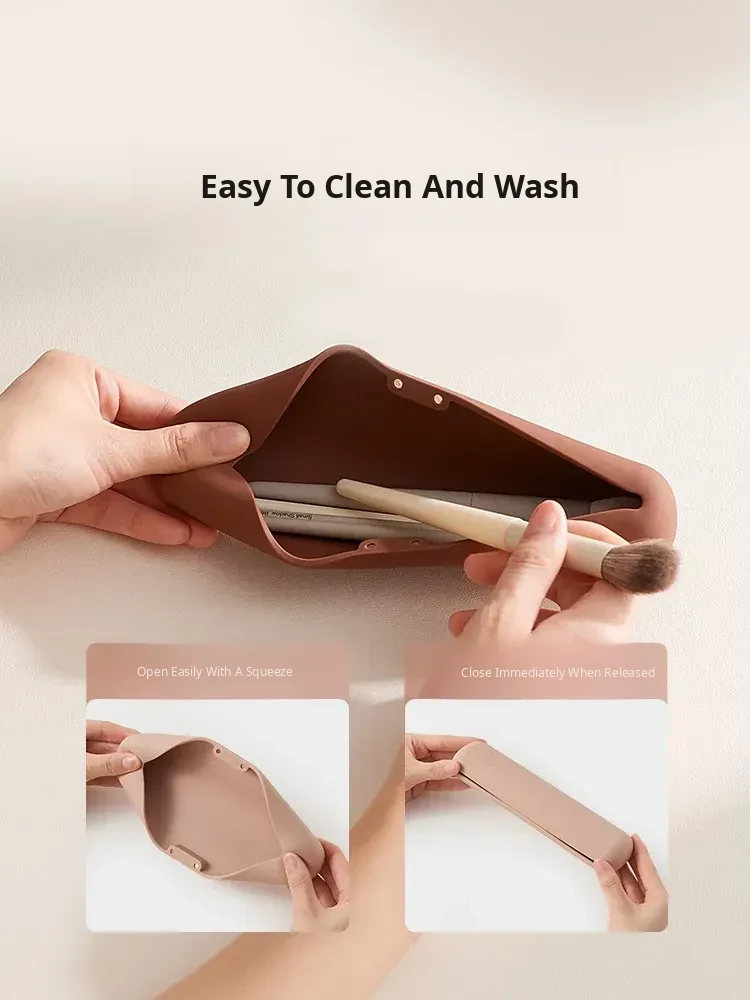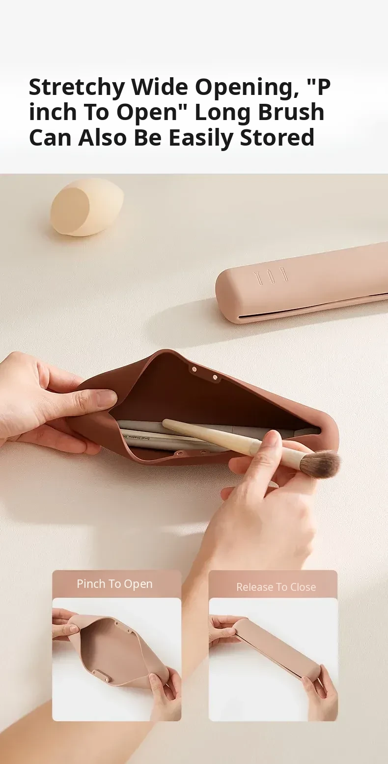 2026 New Portable Silicone Makeup Brush Organizer Bag for Women - Waterproof Lipstick & Small Brush Pouch, Perfect for On-the-Go Beauty Essentials!