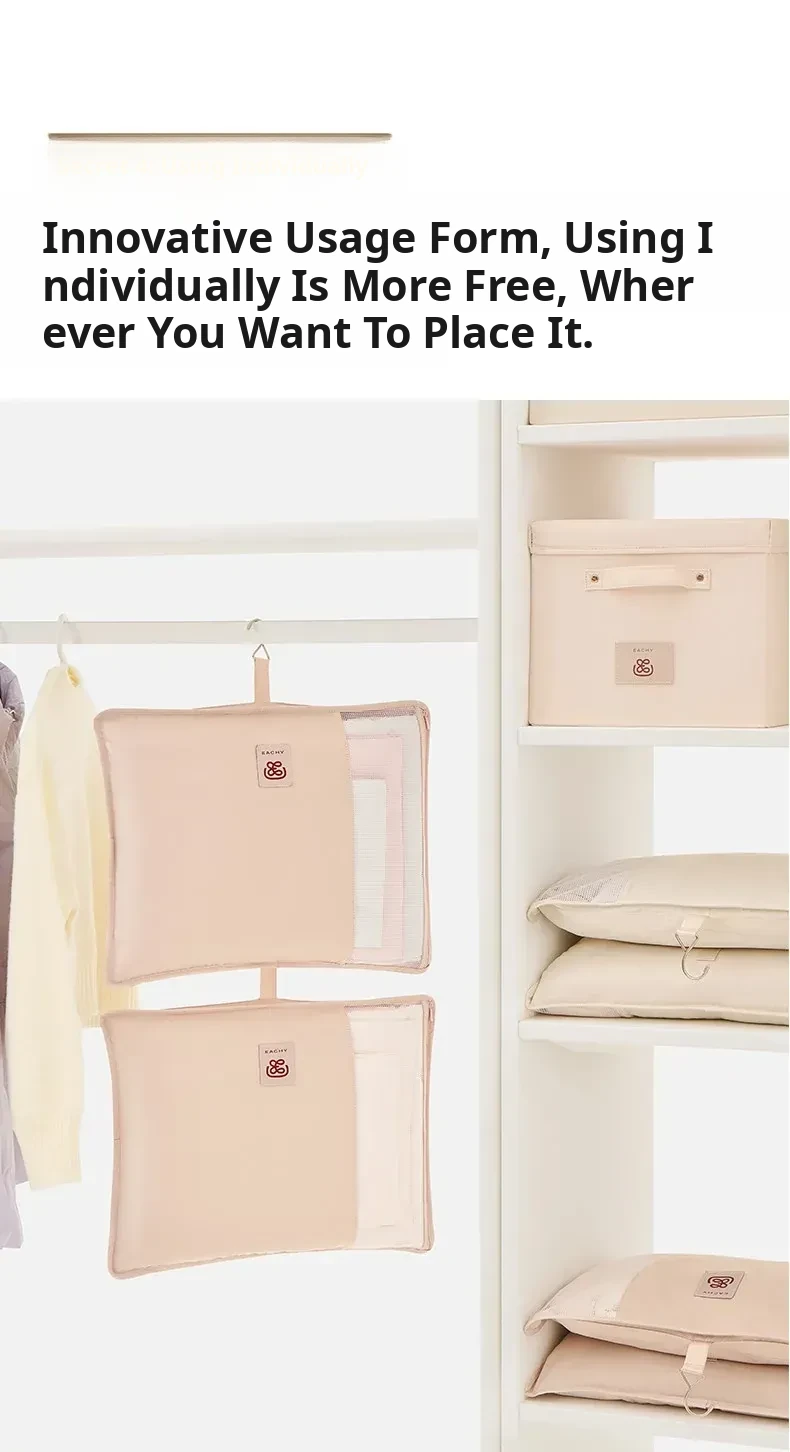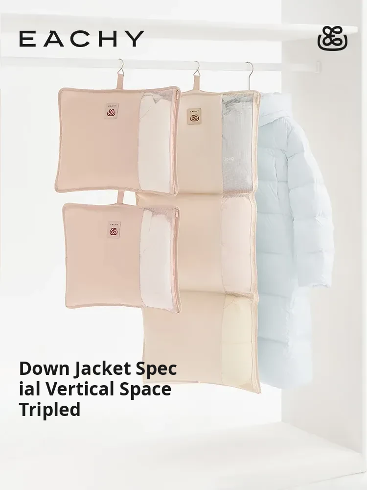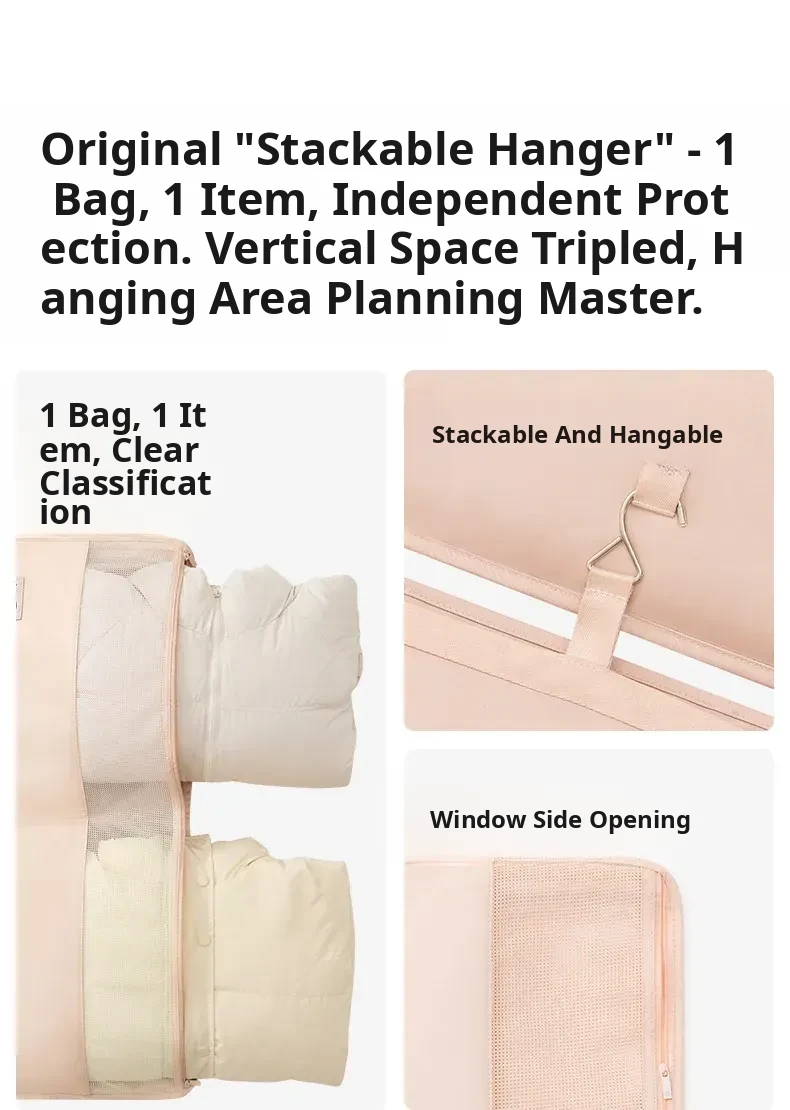 "4-Piece Hanging Storage Bag Set for Down Jackets - Dorm Room Wall-Mounted Organizer, Convenient and Portable Solution for Clutter-Free Living"