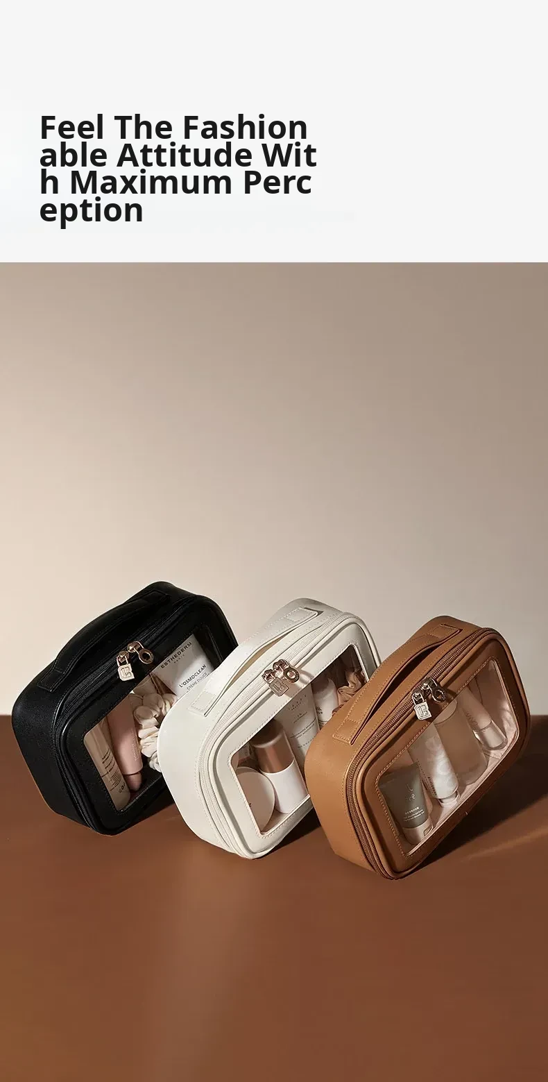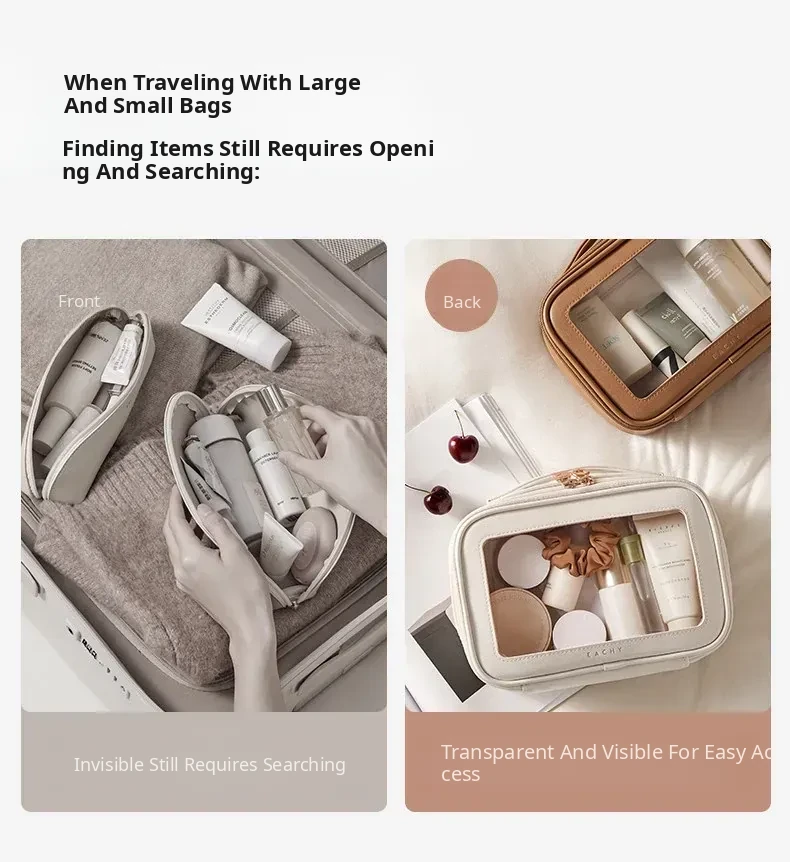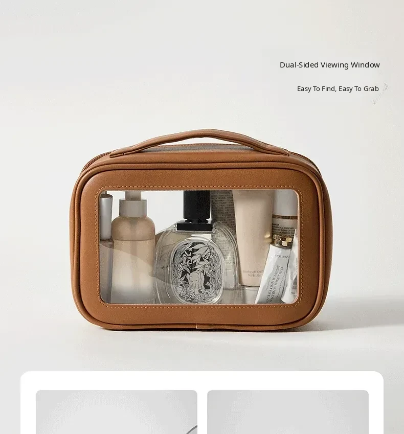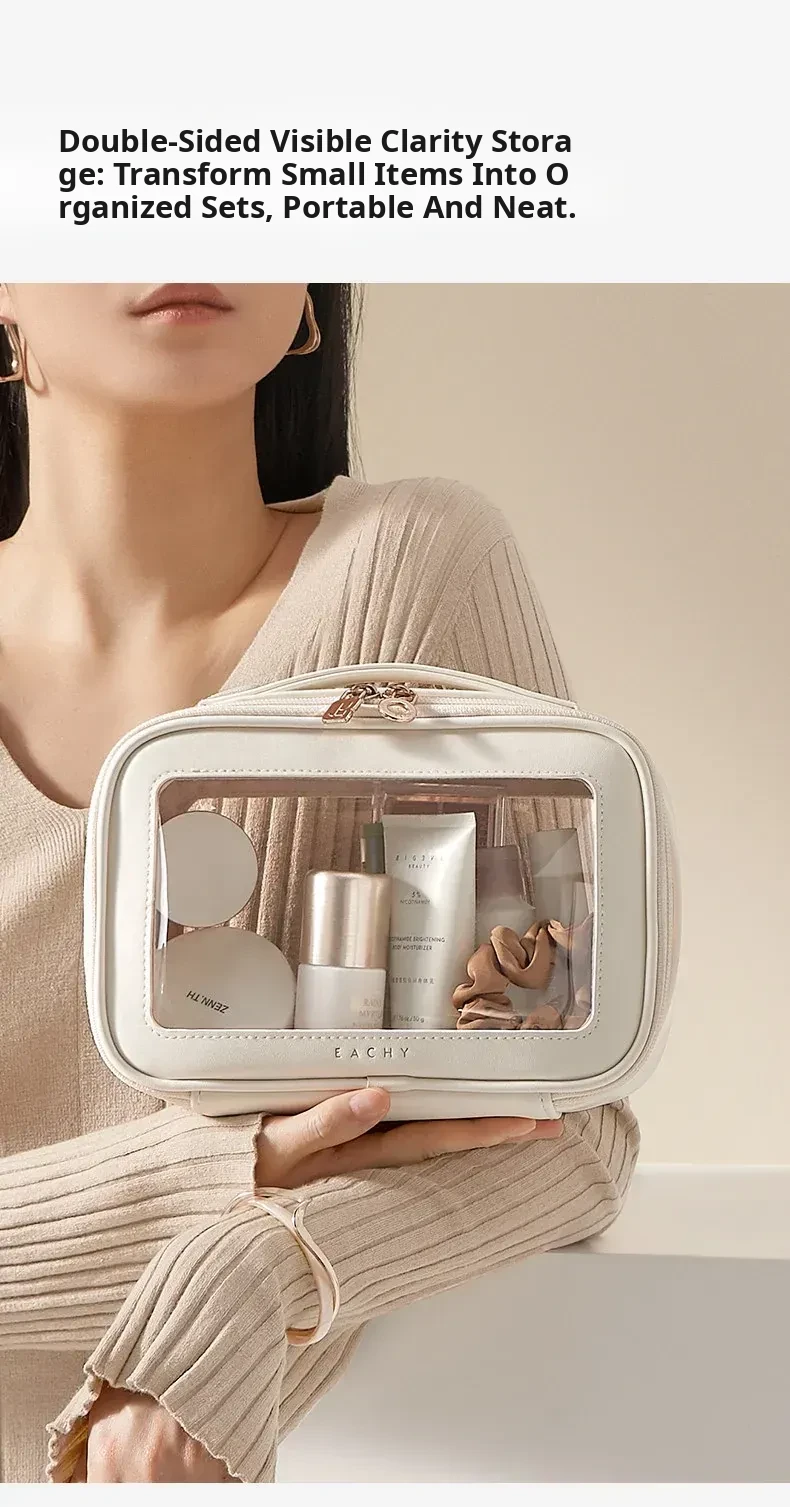 Dual-Sided Transparent Travel Makeup Bag - Waterproof Organizer for Toiletries and Cosmetics, Perfect for On-the-Go Essentials