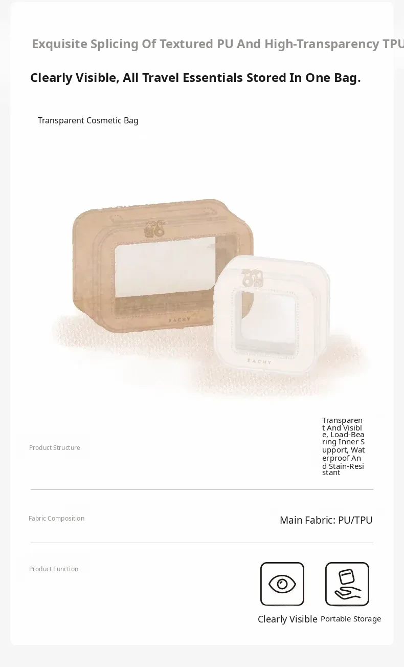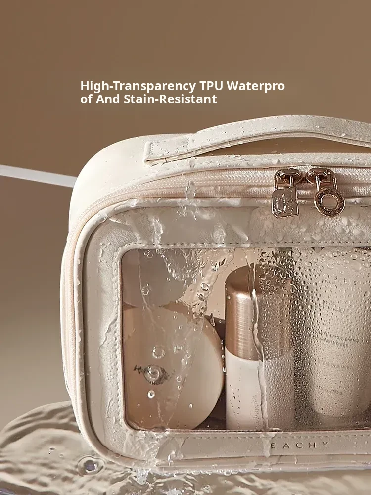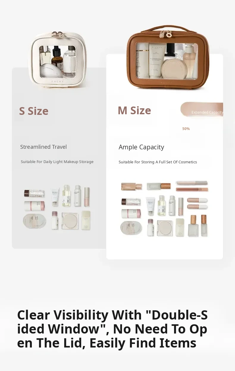 Dual-Sided Transparent Travel Makeup Bag - Waterproof Organizer for Toiletries and Cosmetics, Perfect for On-the-Go Essentials