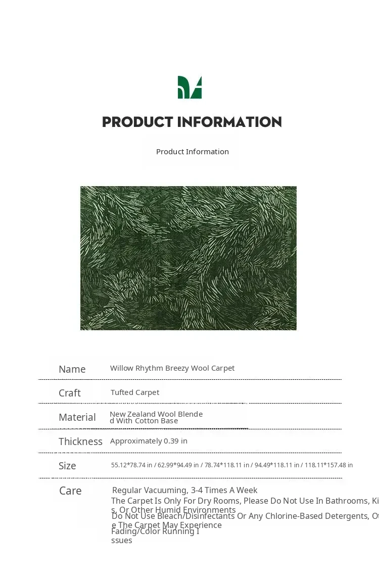【Exclusive Green Edition】DRAN Premium New Zealand Wool Area Rug - Elevate Your Living Room or Bedroom with Luxurious Ambiance - Fresh Green Design for a Chic Touch