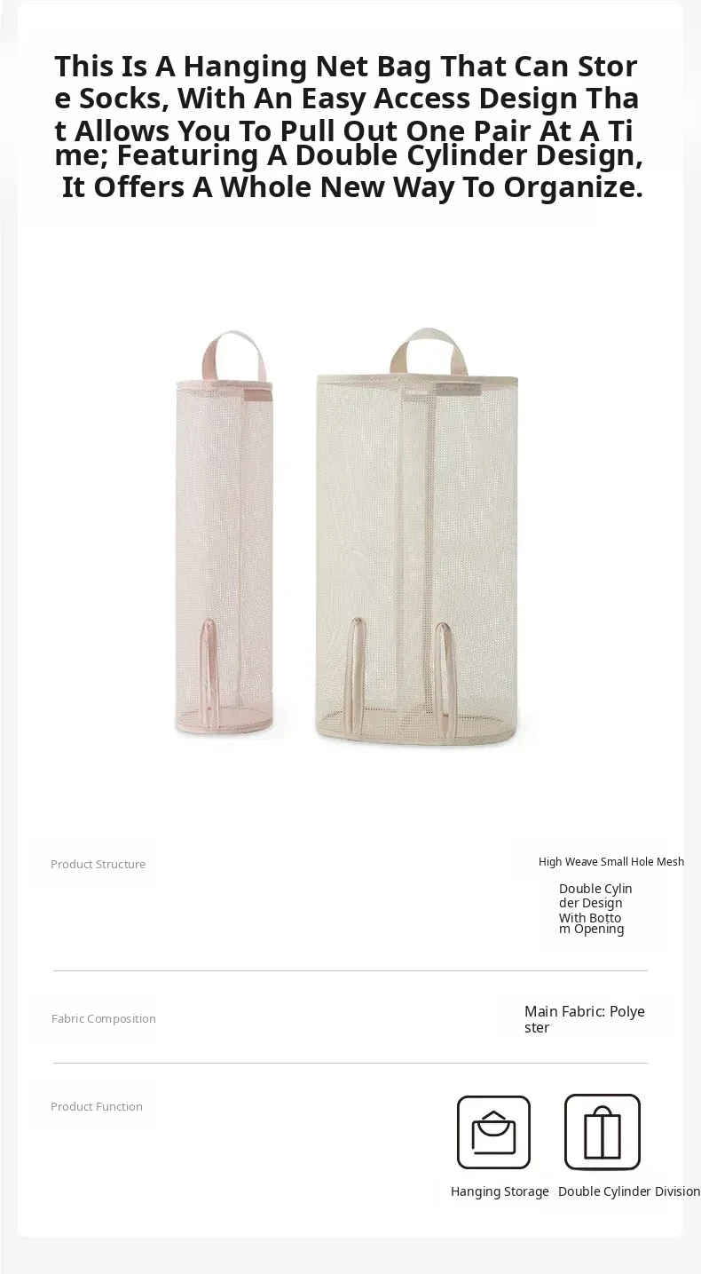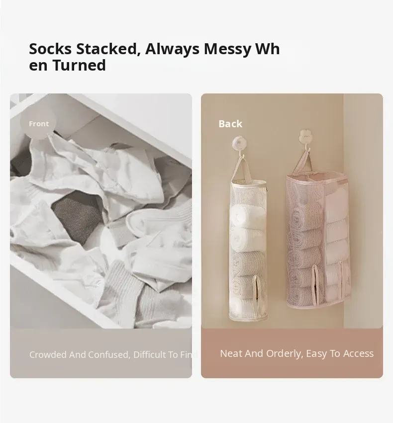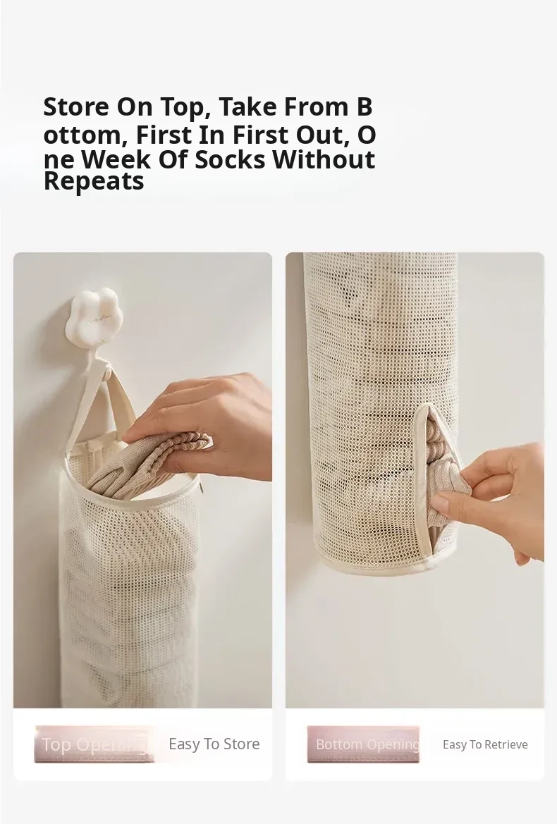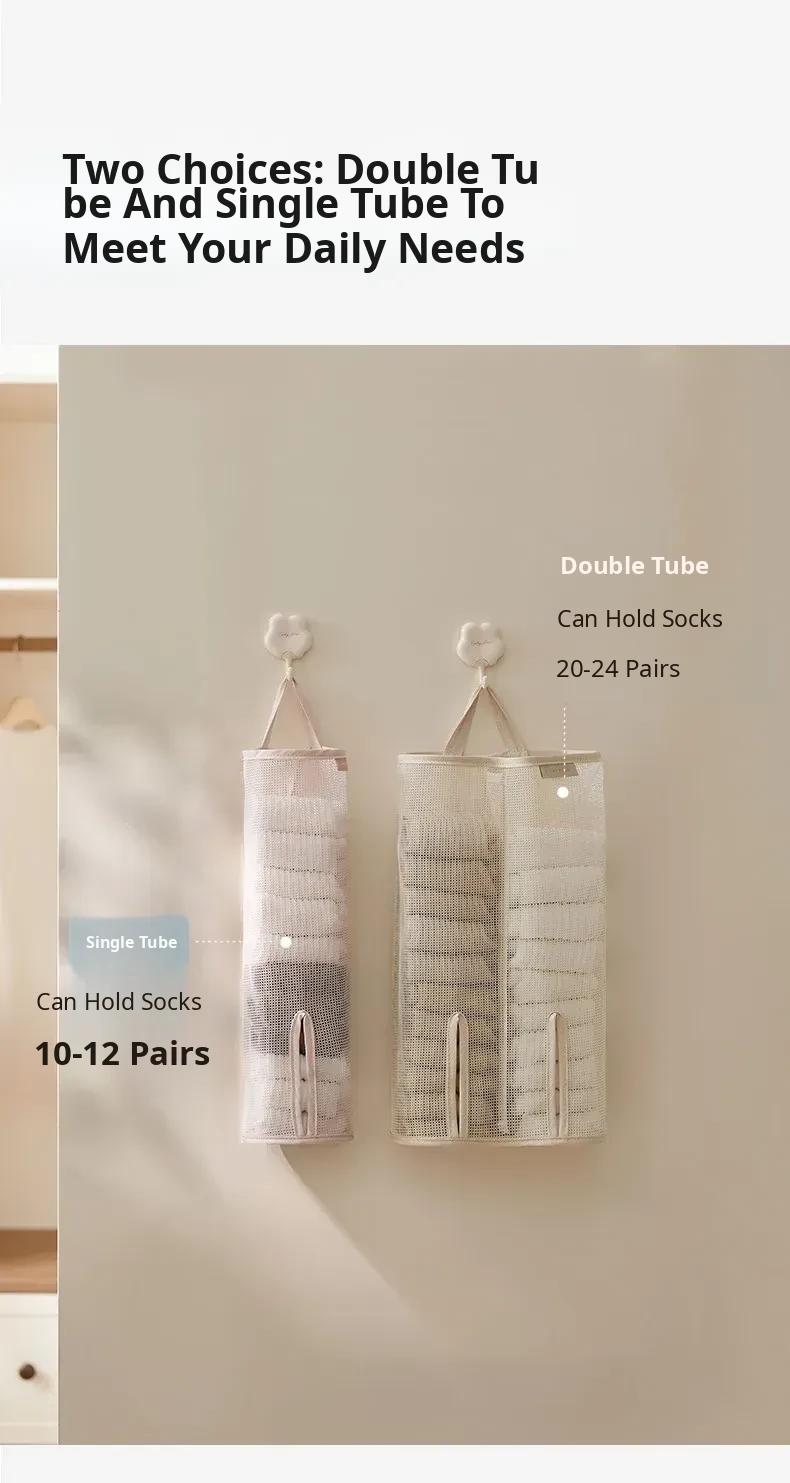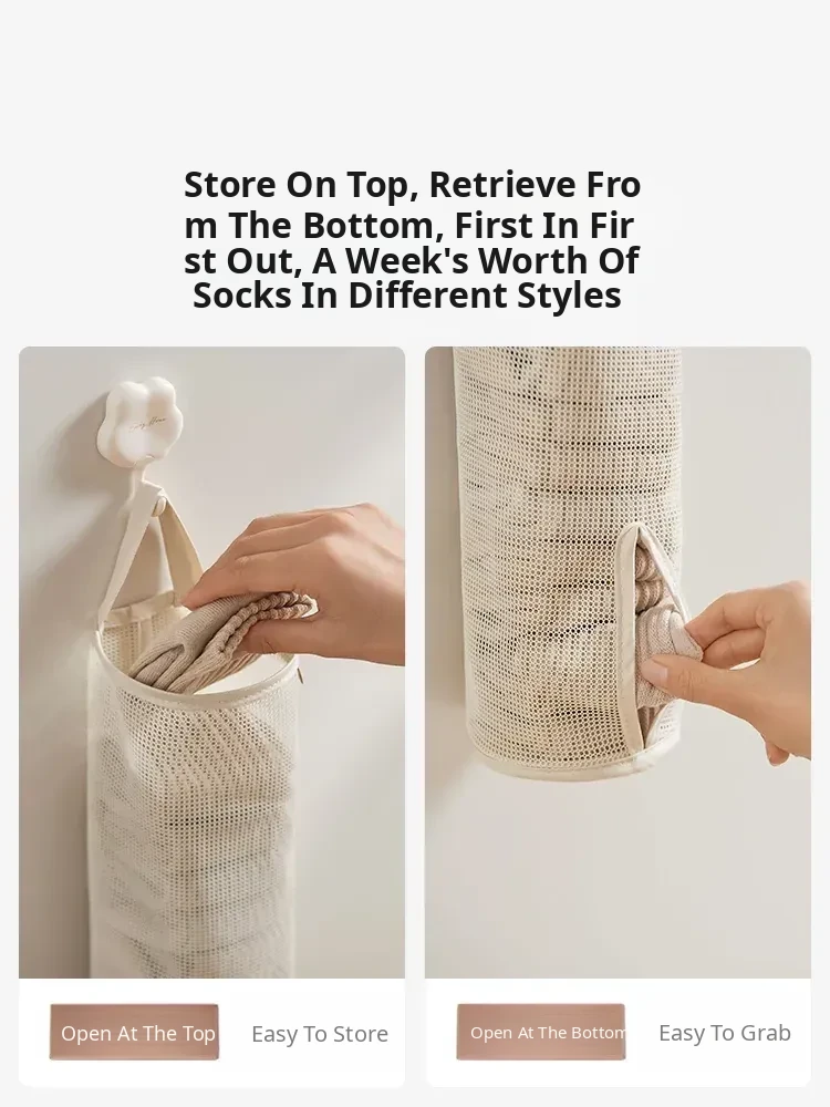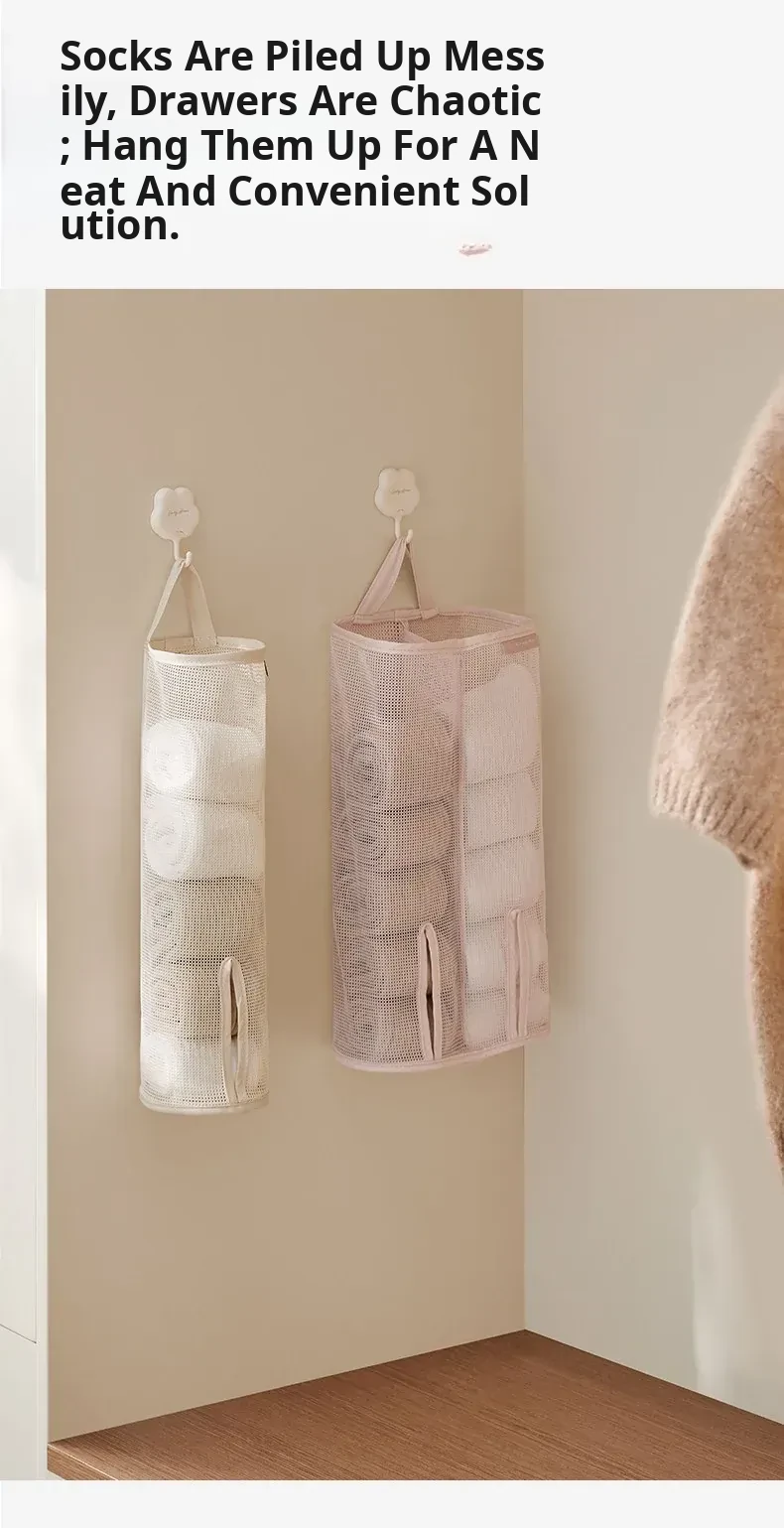 Hanging Storage Bag for Socks and Underwear - Wall-Mounted Mesh Organizer for Dormitory and Bedroom - Stylish Fabric Design for Efficient Space Saving