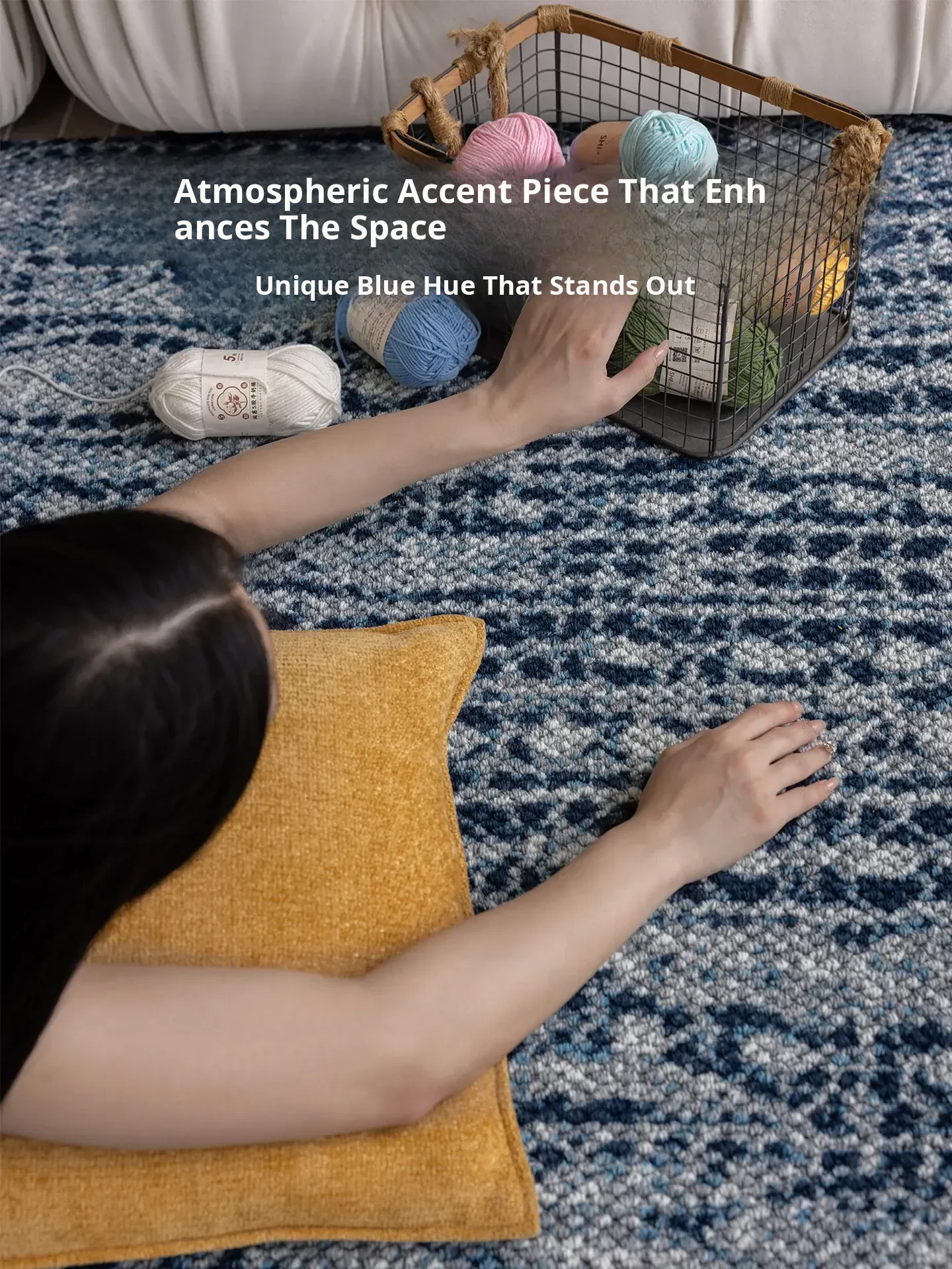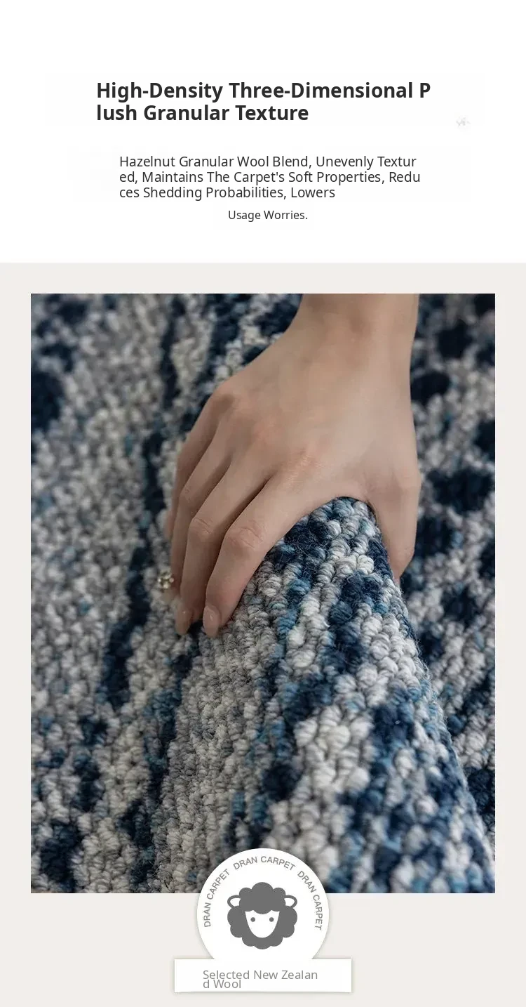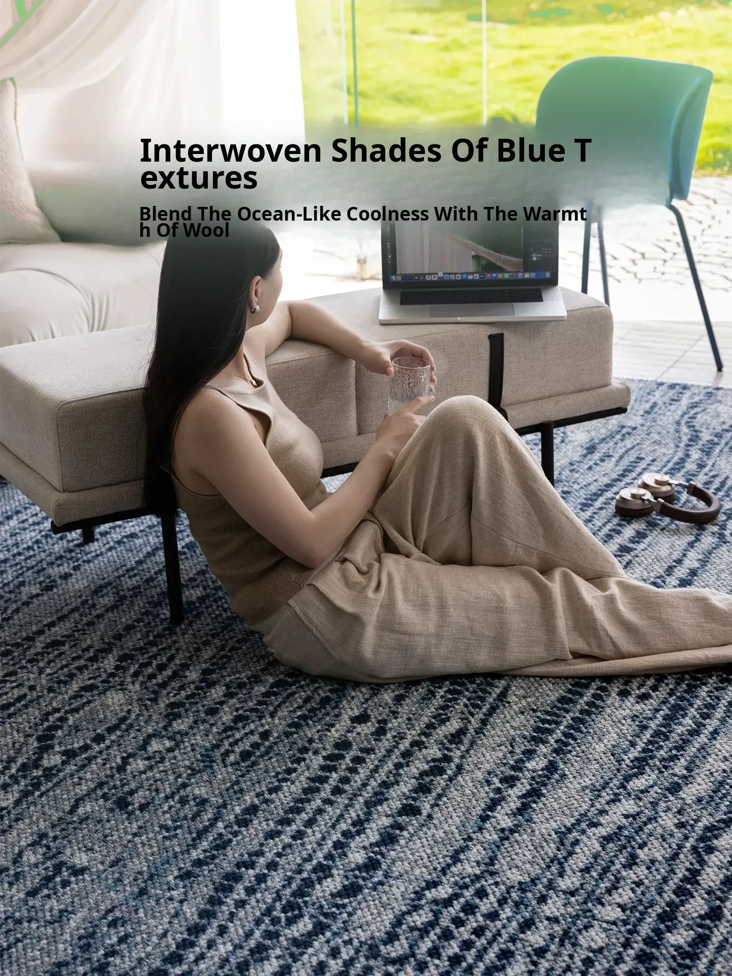 【Limited Edition Blue】DRAN New Zealand Wool Area Rug - Luxurious Atmosphere for Living Room & Bedroom - Stylish New Design