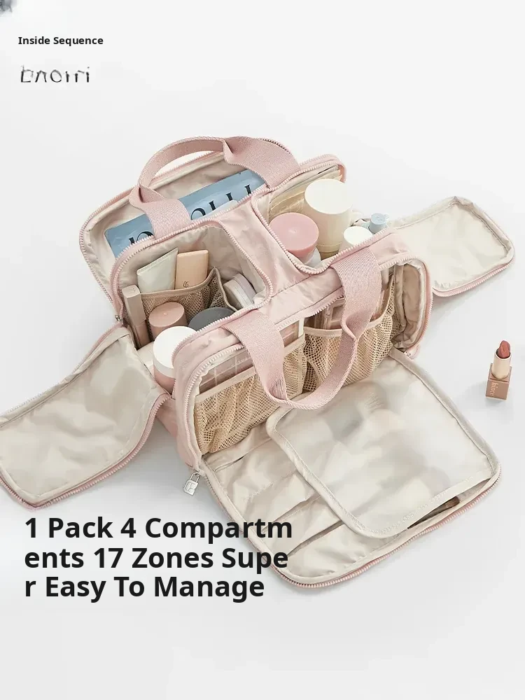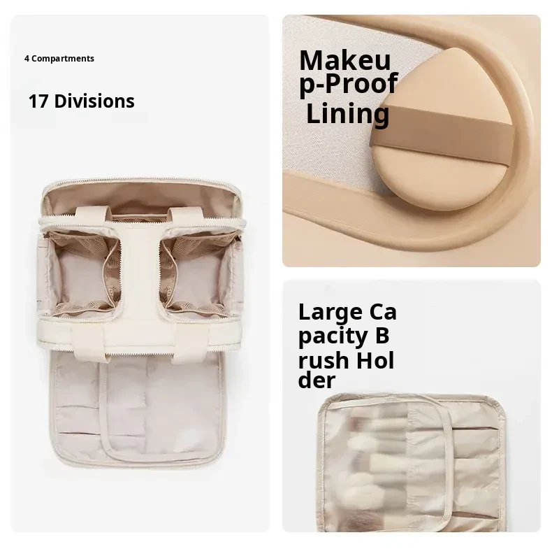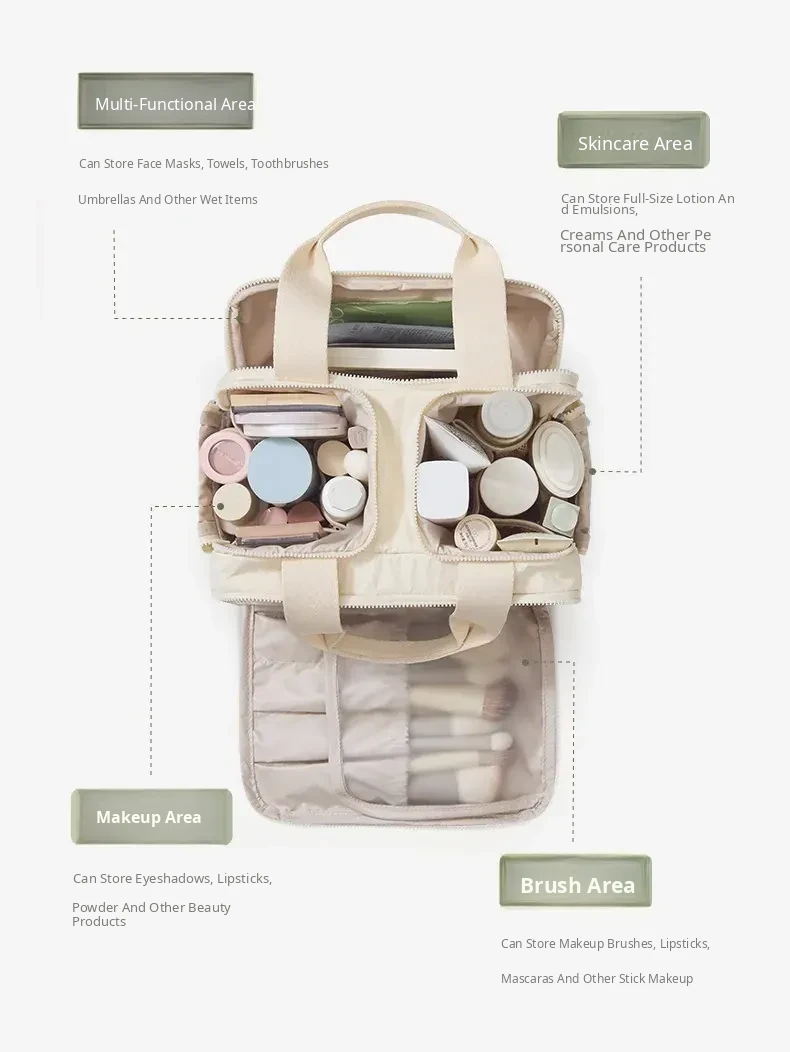 Lixu Large Capacity Makeup Bag – Portable Travel Cosmetic Organizer with Divided Compartments, Waterproof Toiletry Bag for Effortless Travel and Storage