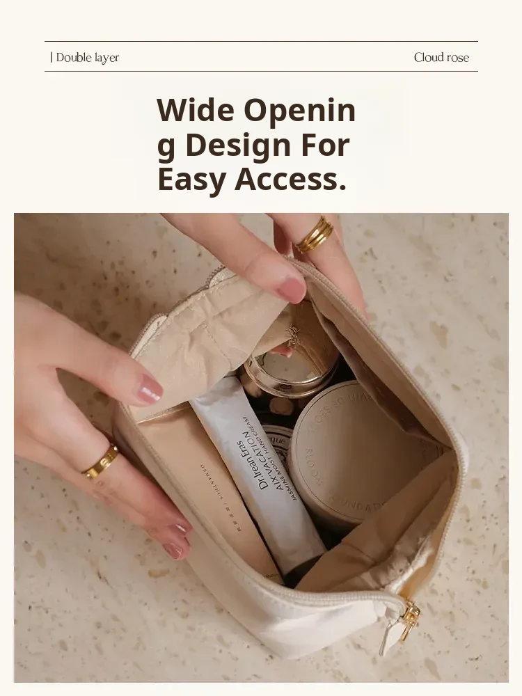 Double Layer Cloud Cosmetic Bag-Rose Pink-Xl