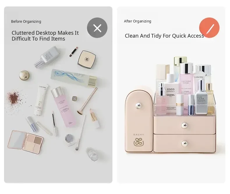 Luxury Transparent Makeup Organizer - Desktop Skincare Storage with Drawer Dividers for Elegant Vanity Display - Perfect for Neat and Stylish Beauty Essentials!