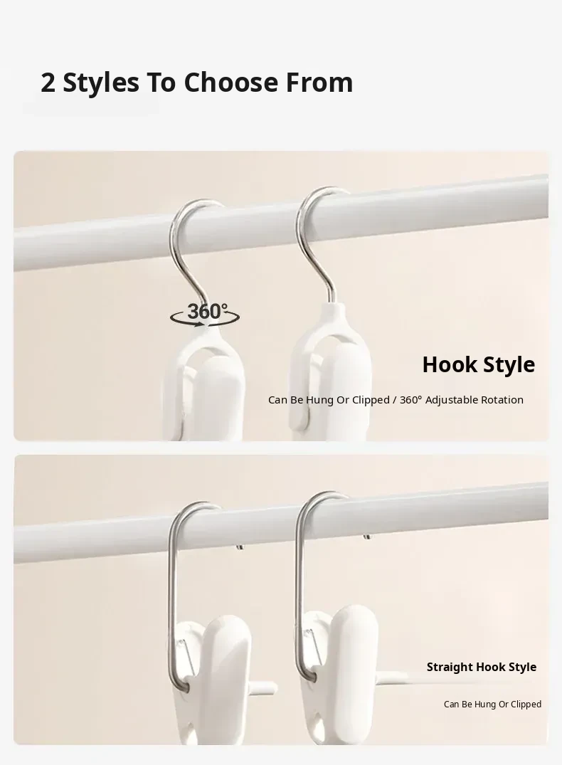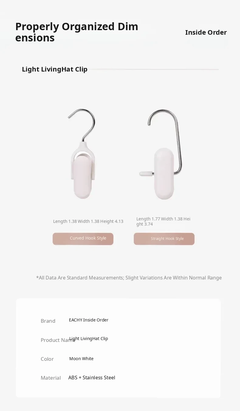 Curved Hook Style - Moon White, 2-Pack([Clip Adjustable])