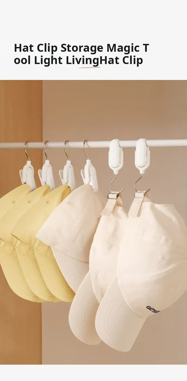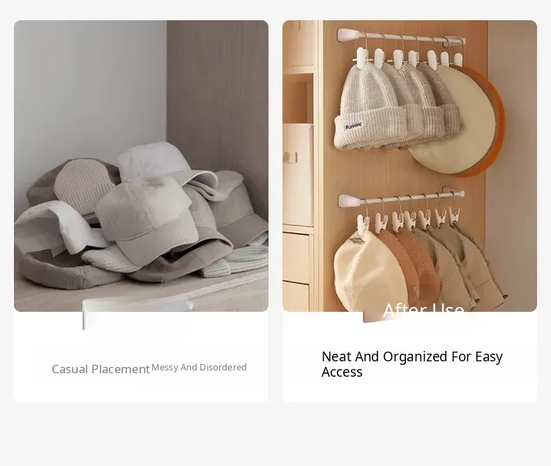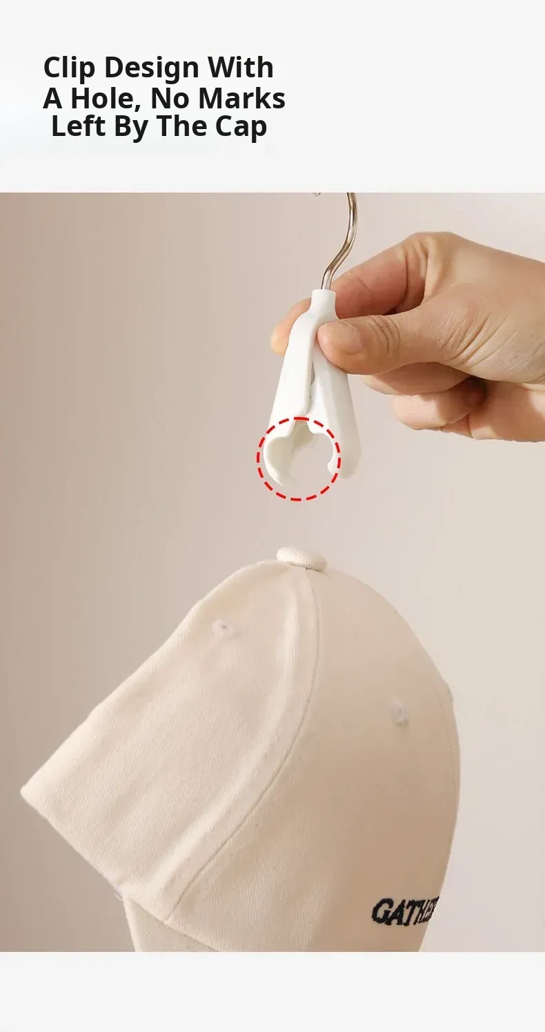 Revolutionary Hat Organizer Hook - Perfect for Home, Dorms & Closets! Space-Saving Rotating Clip Hanger, No-Trace Design for Neat and Tidy Storage.