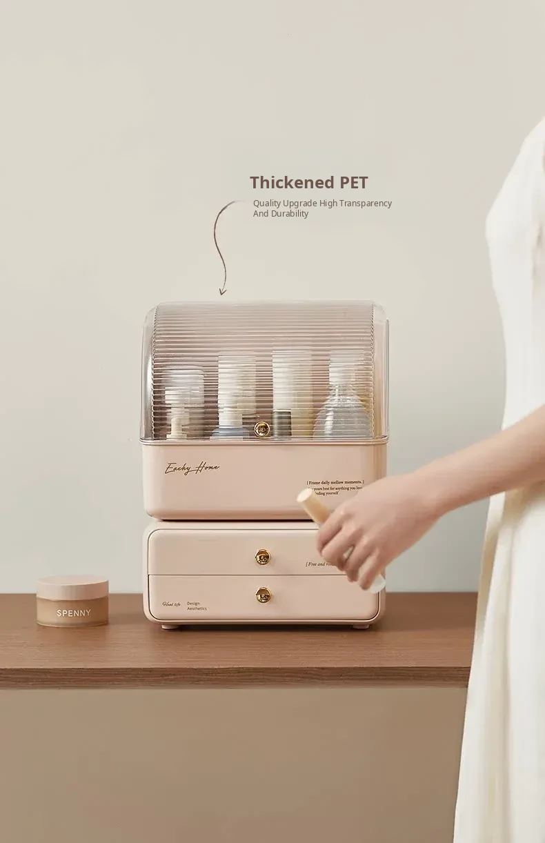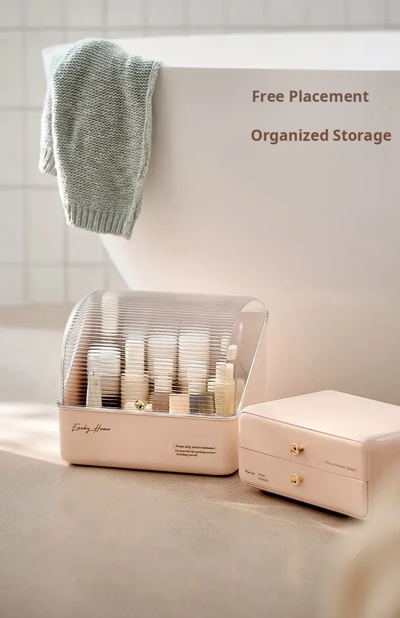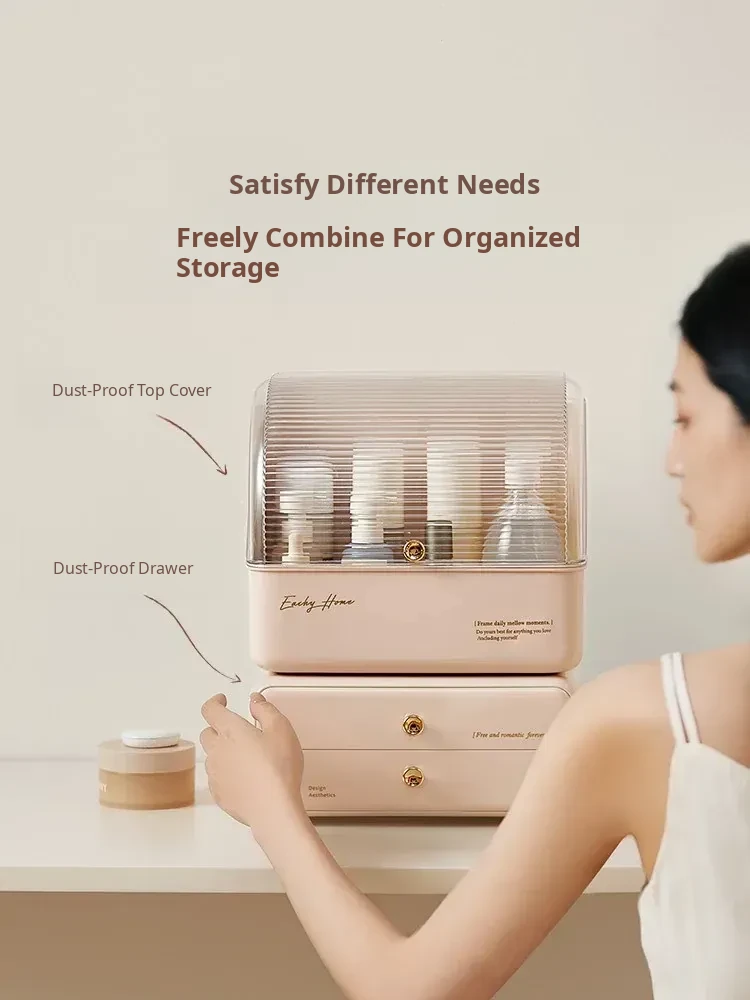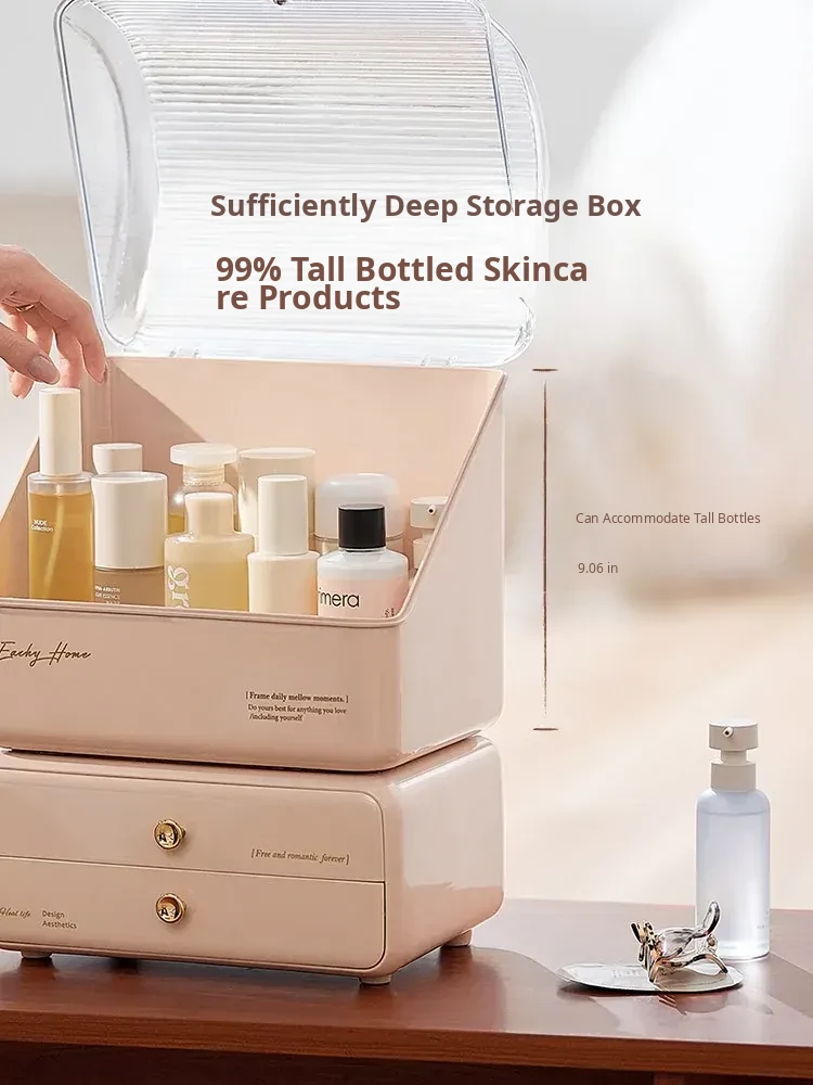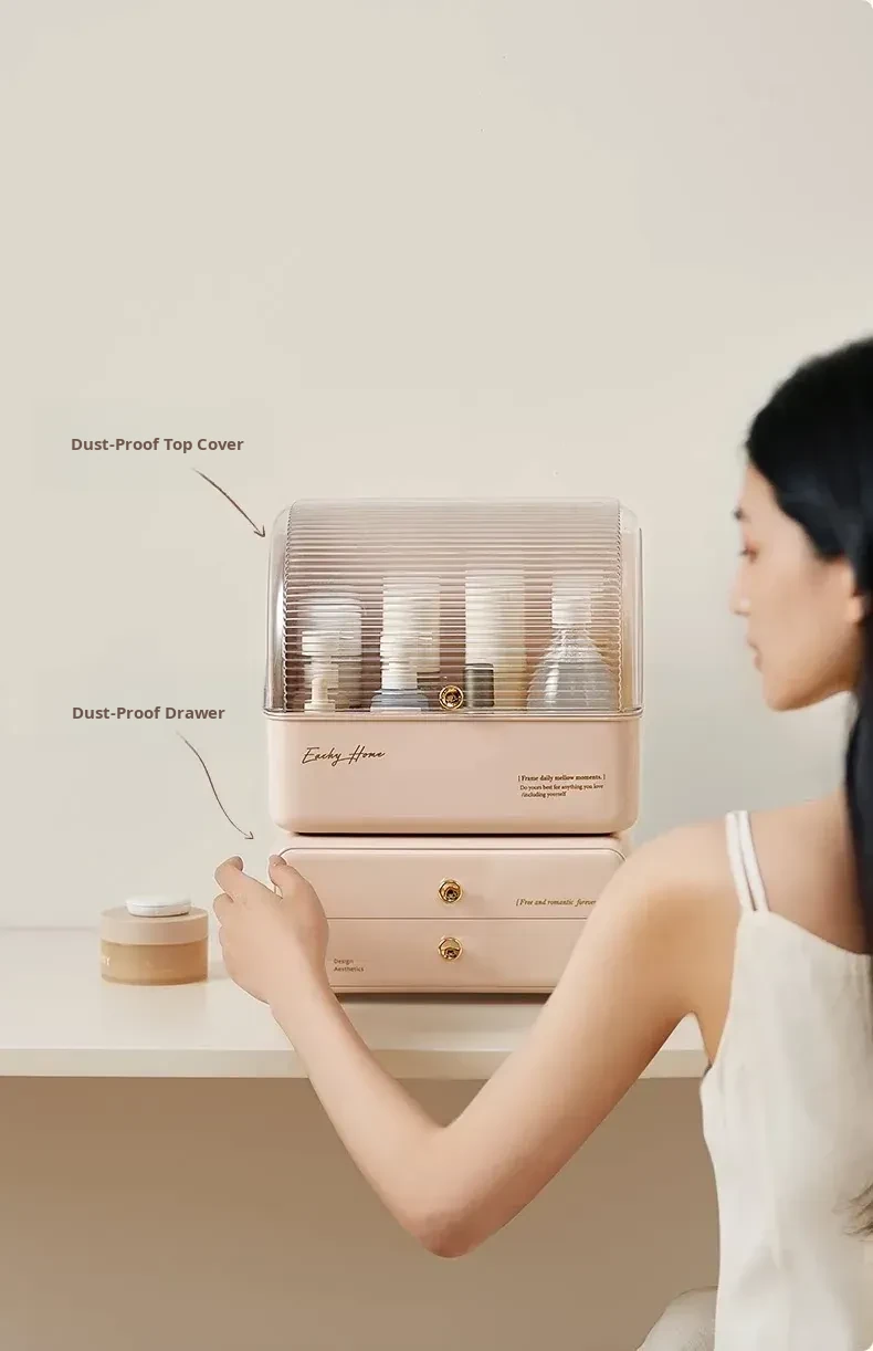 Stylish and Cute Makeup Organizer Box with Drawers - Dustproof Cosmetic Storage for Vanity Table, Perfect for Face Masks and Accessories