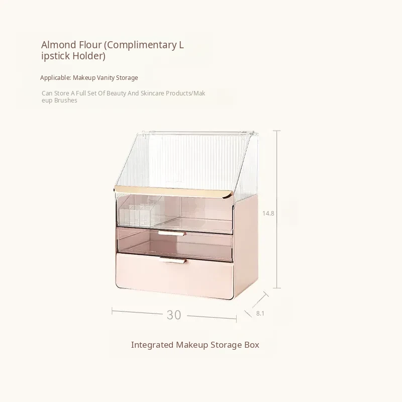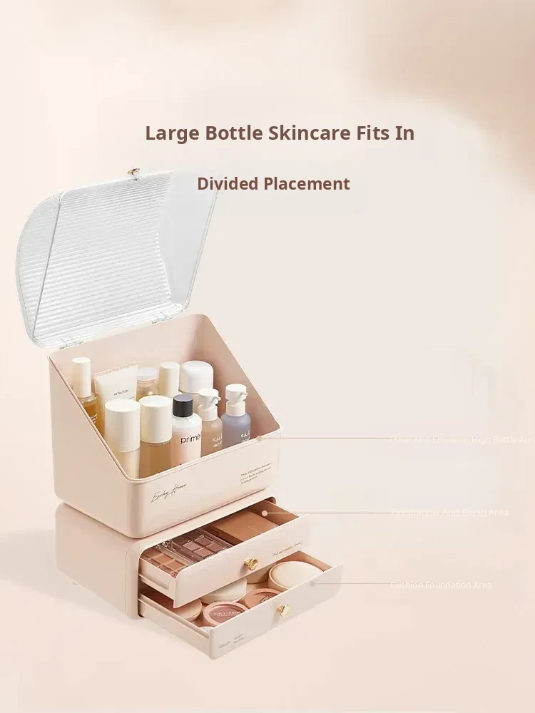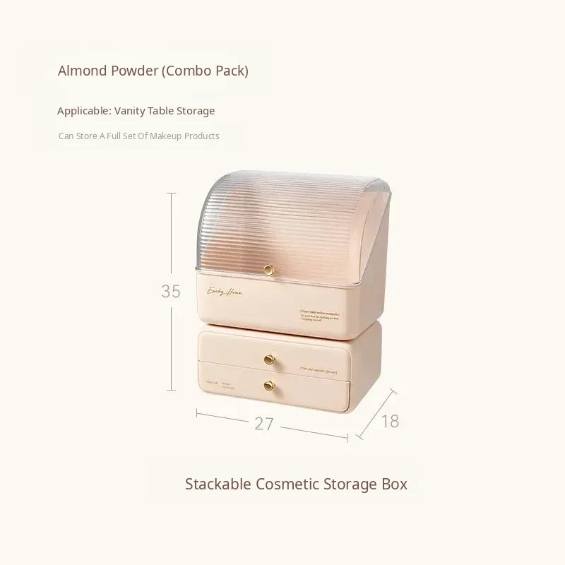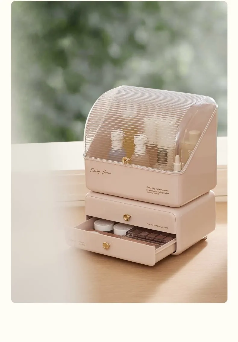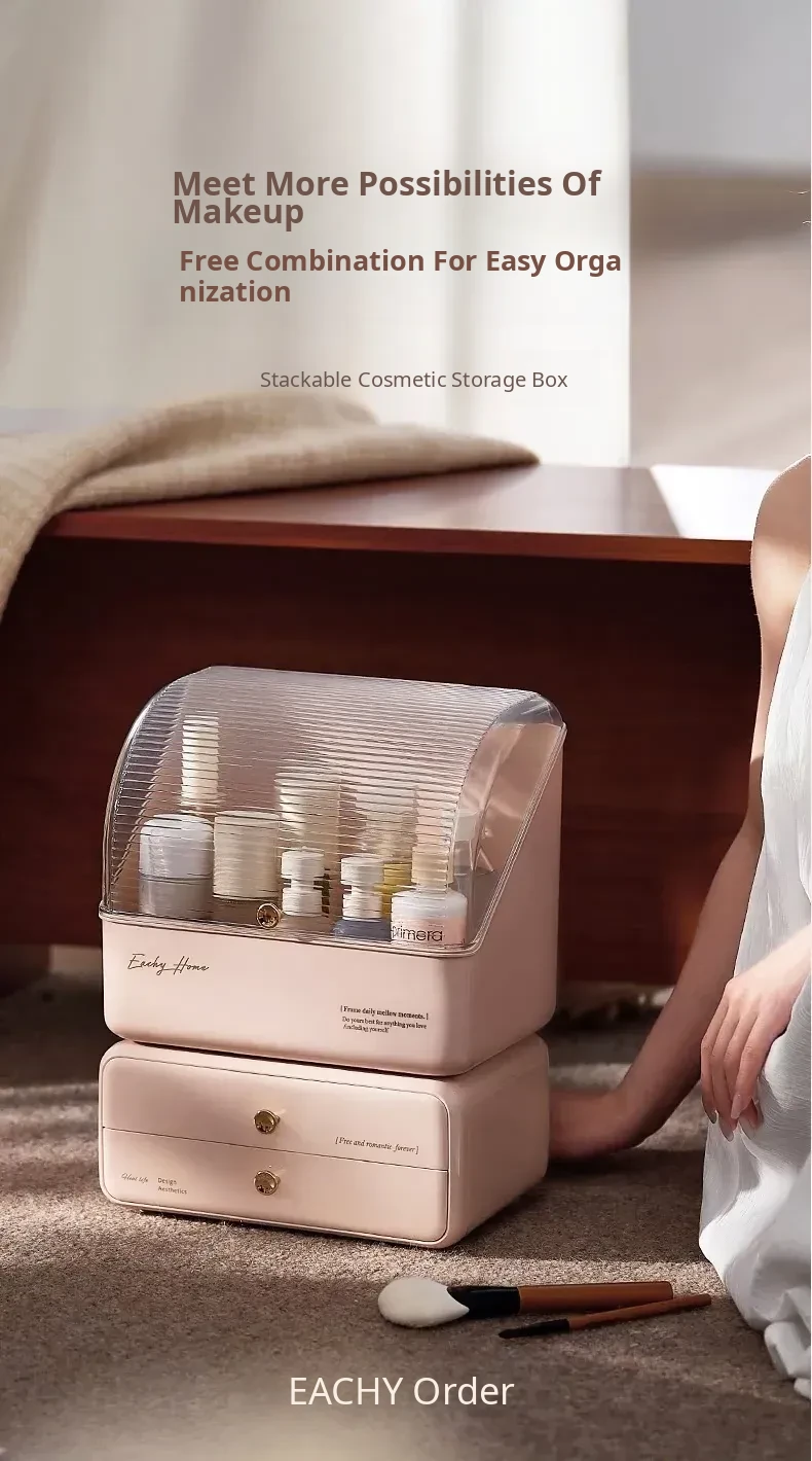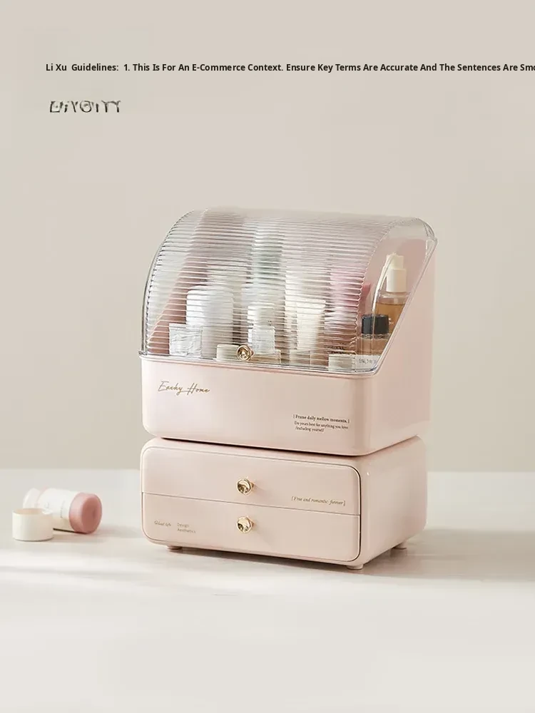 Stylish and Cute Makeup Organizer Box with Drawers - Dustproof Cosmetic Storage for Vanity Table, Perfect for Face Masks and Accessories