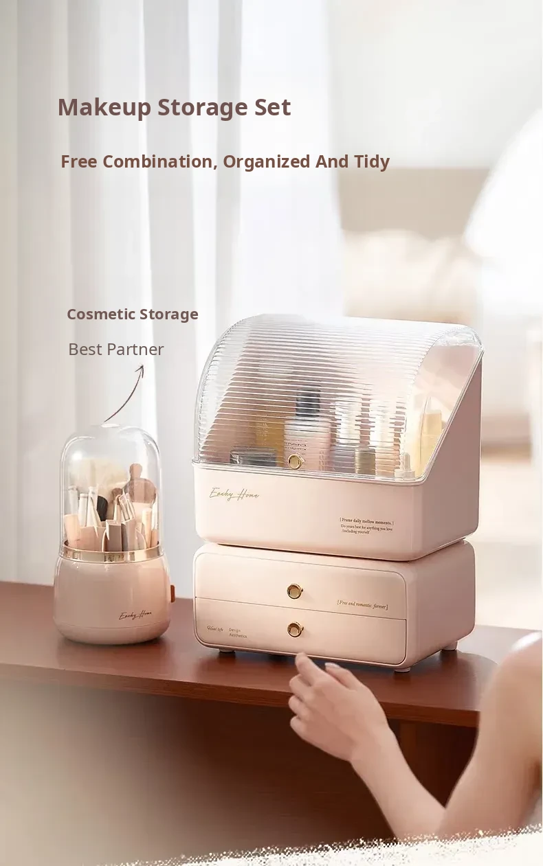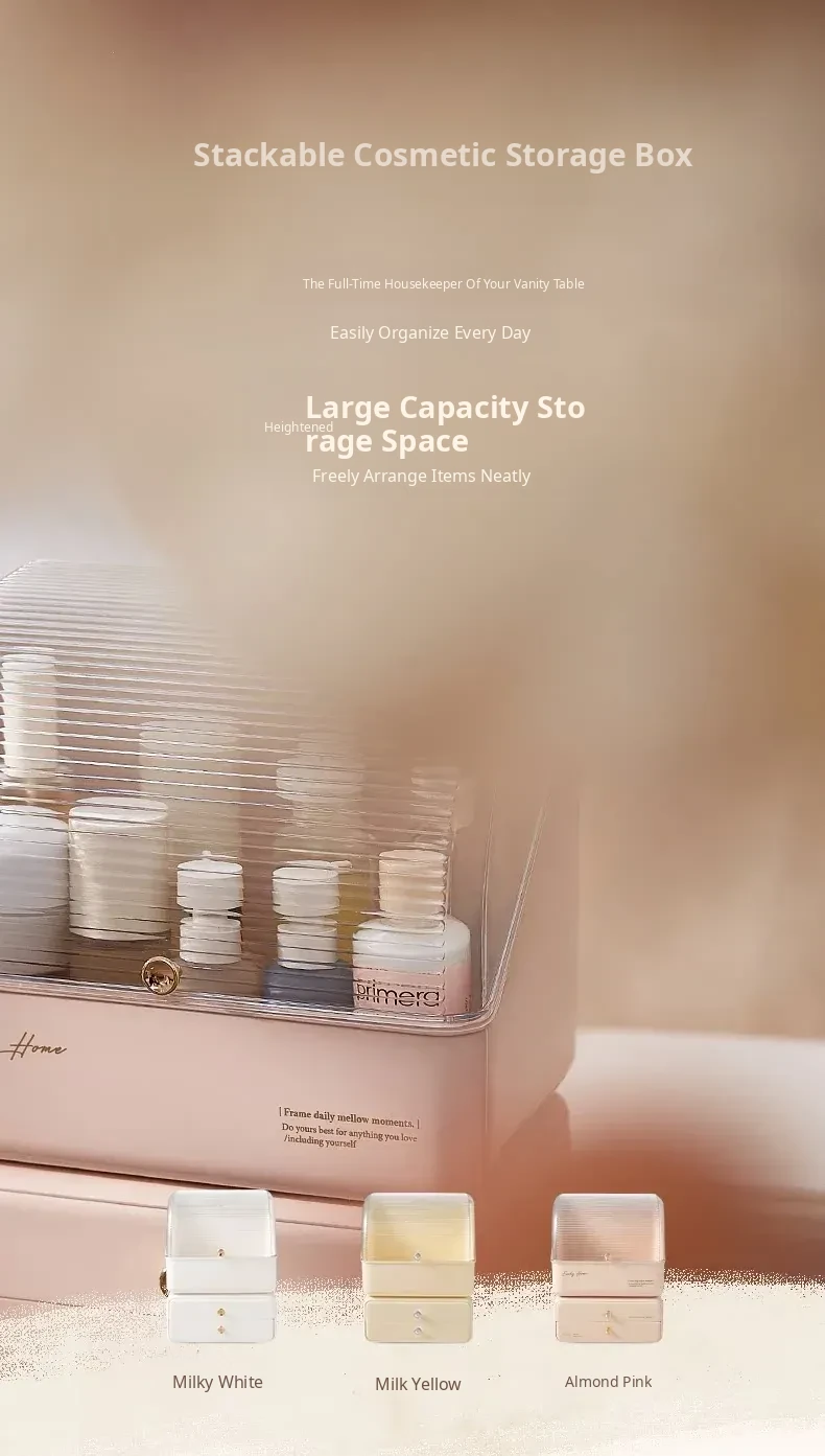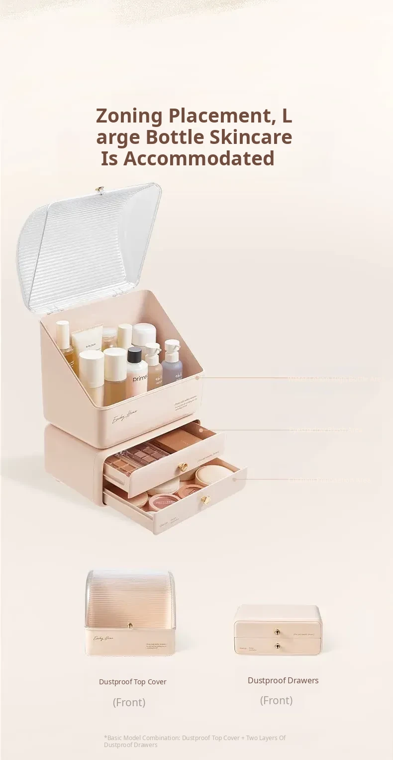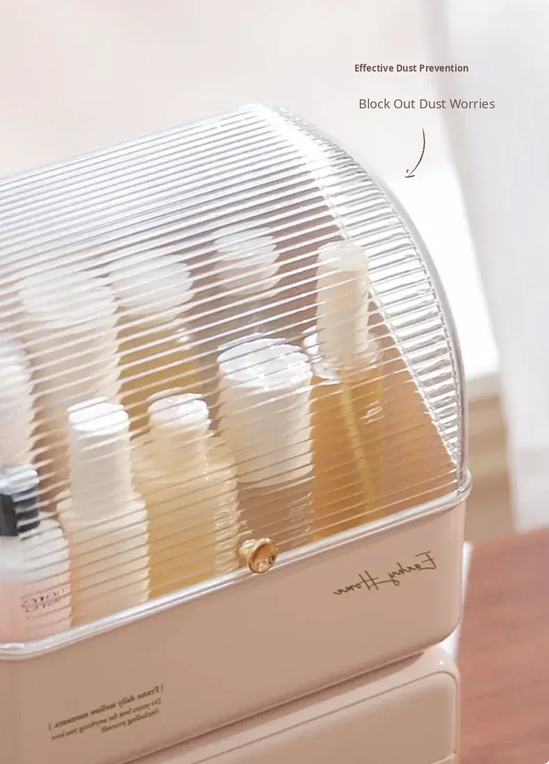 Stylish and Cute Makeup Organizer Box with Drawers - Dustproof Cosmetic Storage for Vanity Table, Perfect for Face Masks and Accessories