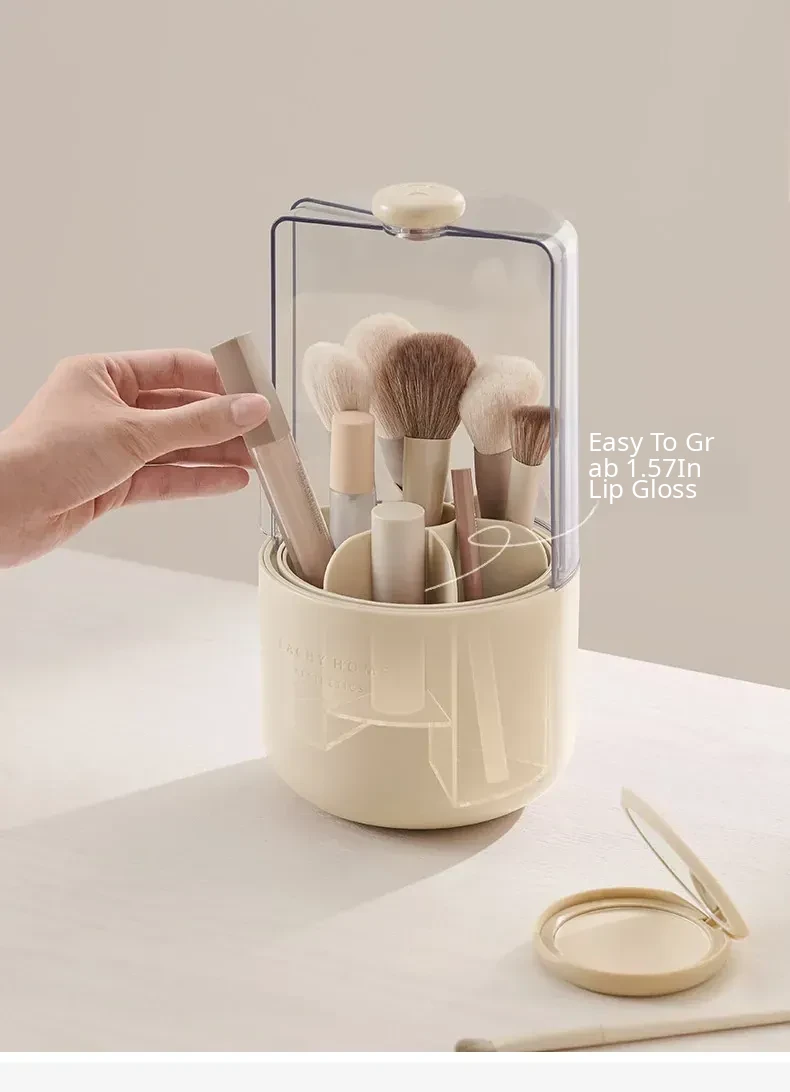 Stylish Makeup Brush Organizer with Lid - Dustproof Desktop Storage Box for Beauty Tools - Elegant Vanity Makeup Brush Holder and Cosmetic Storage Rack