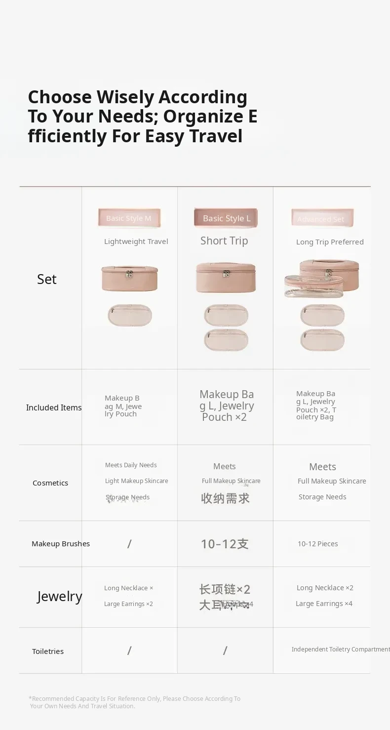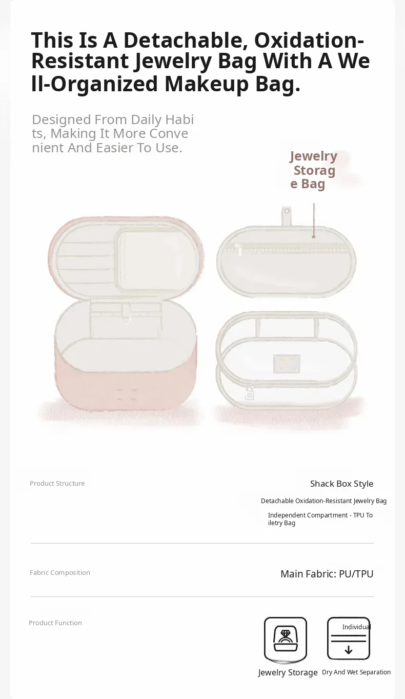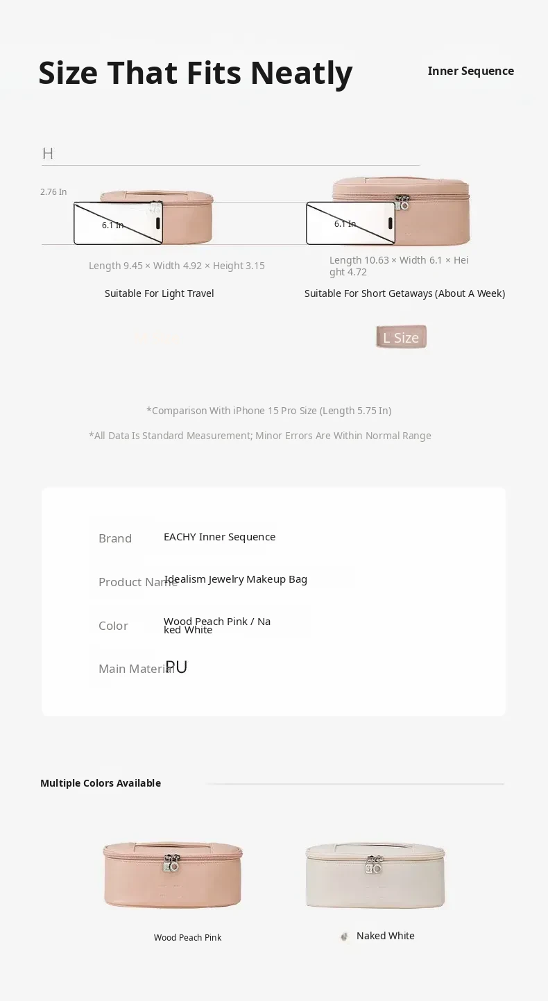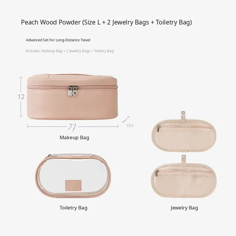 [2 Pieces] Wooden Peach Color-L-Jewelry Bag*2+Toiletries Bag