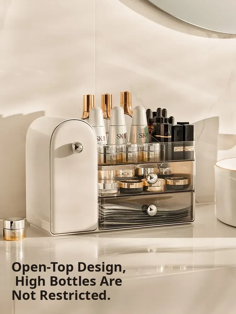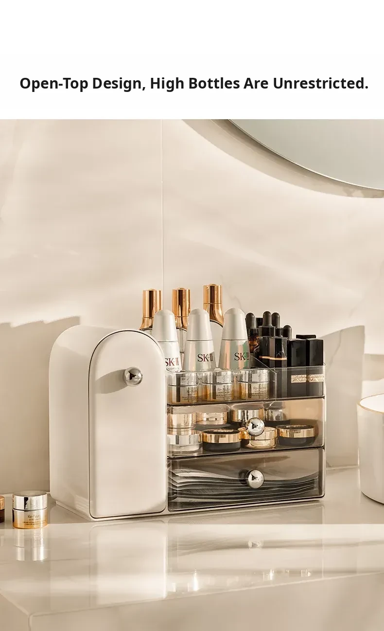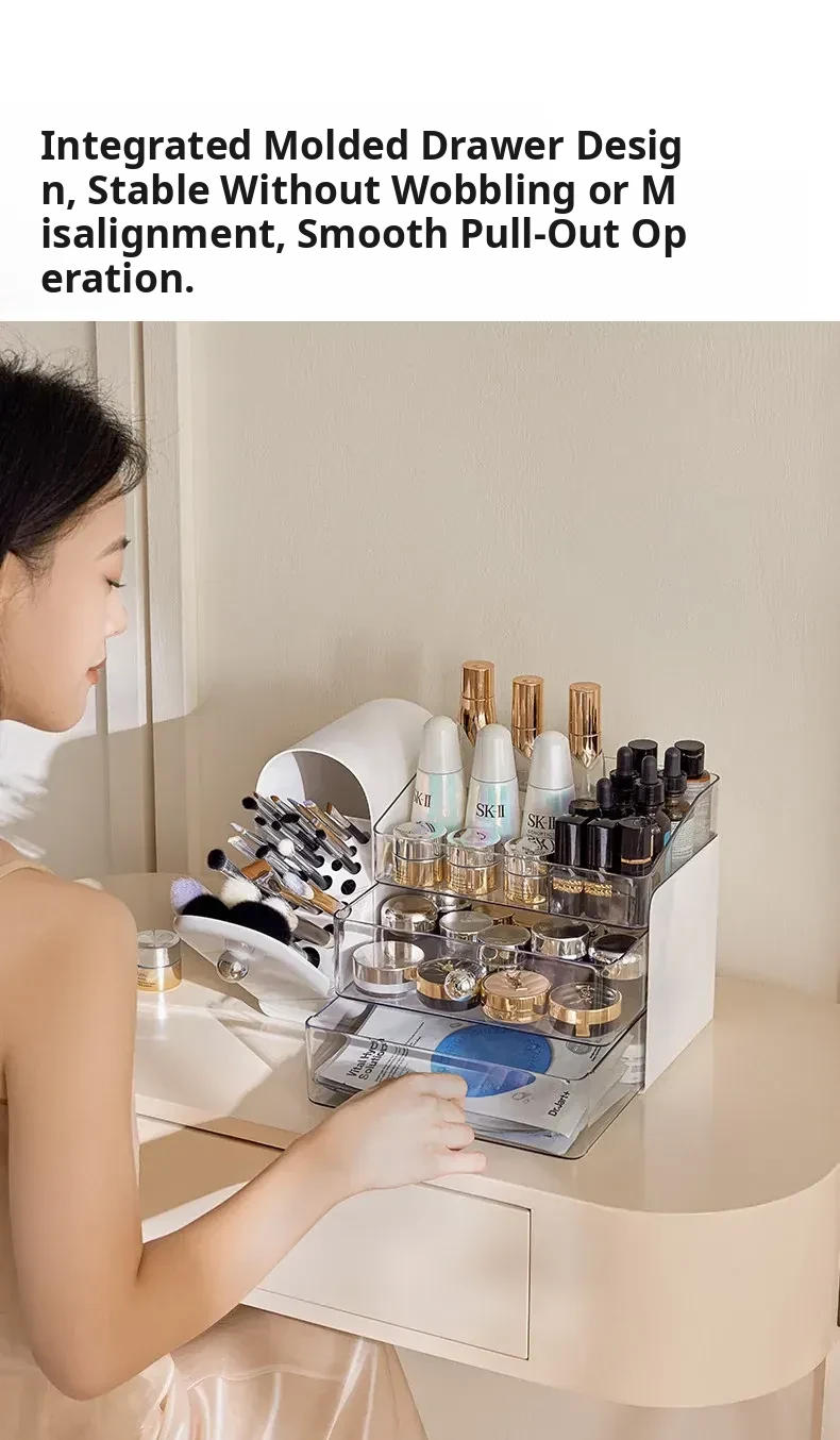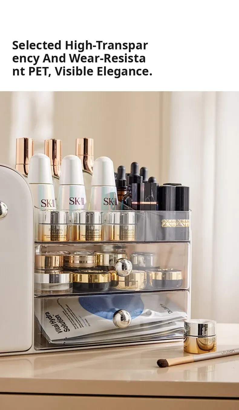 Stylish Transparent Cosmetic Organizer - Elegant Desktop Skincare Storage with Drawer Dividers for Your Vanity