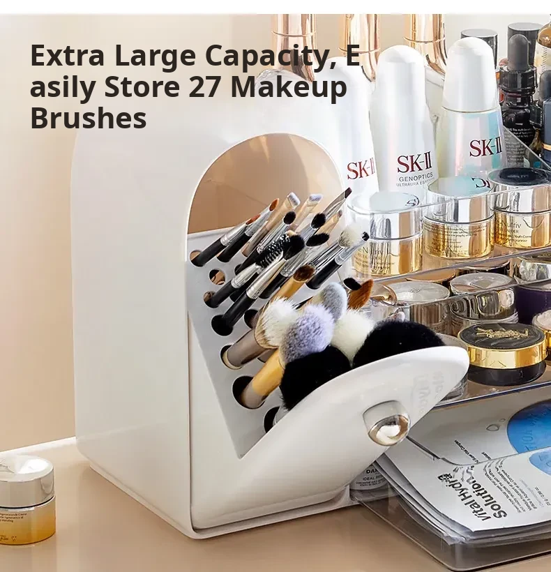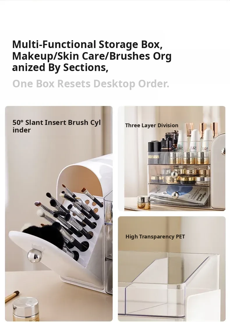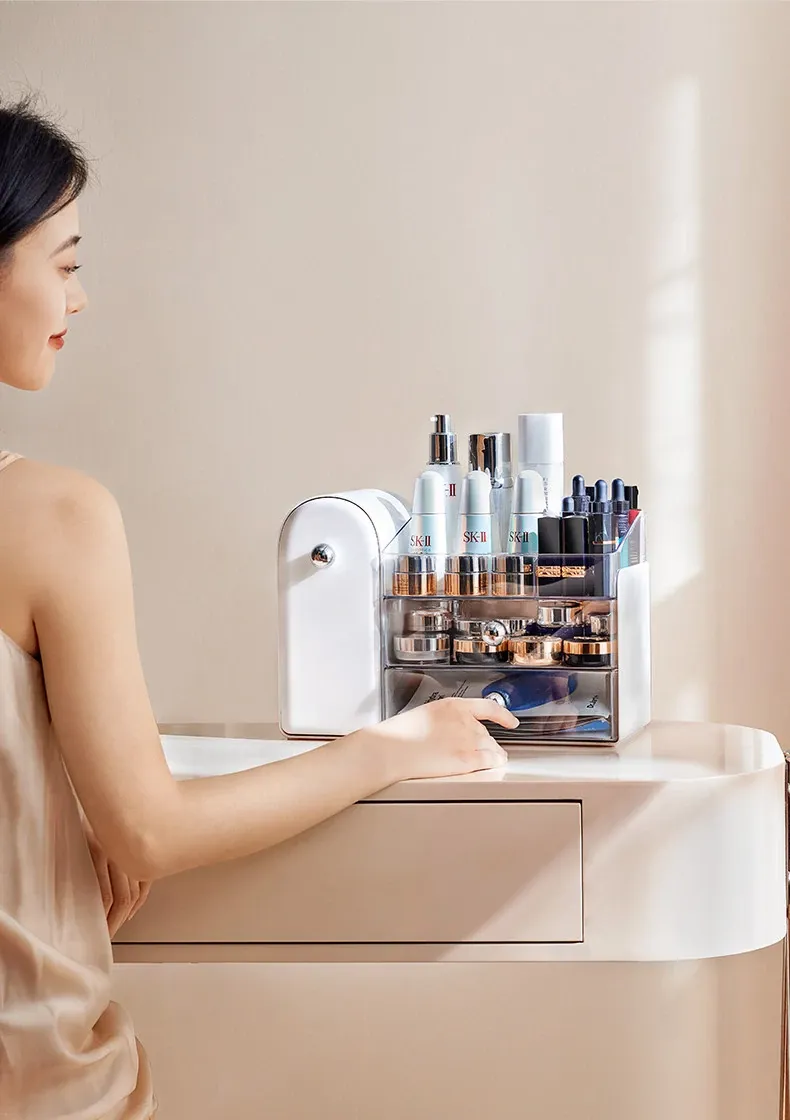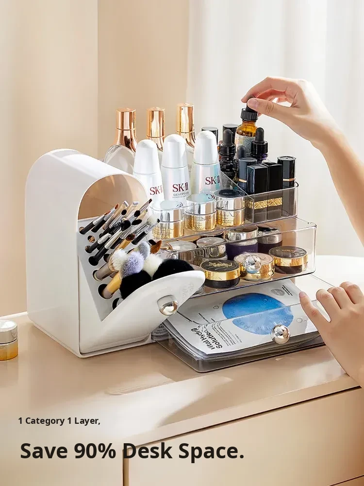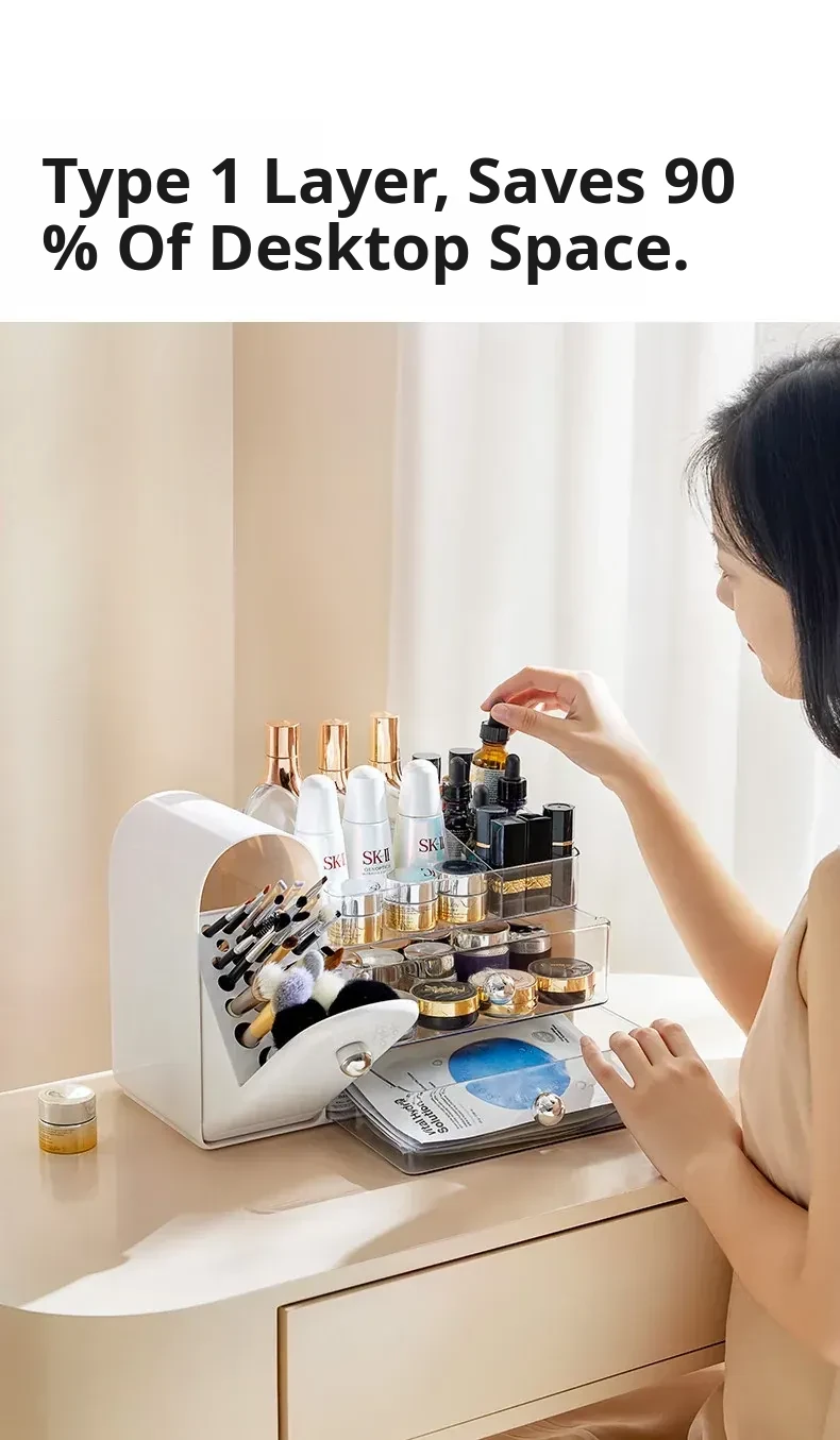 Stylish Transparent Cosmetic Organizer - Elegant Desktop Skincare Storage with Drawer Dividers for Your Vanity