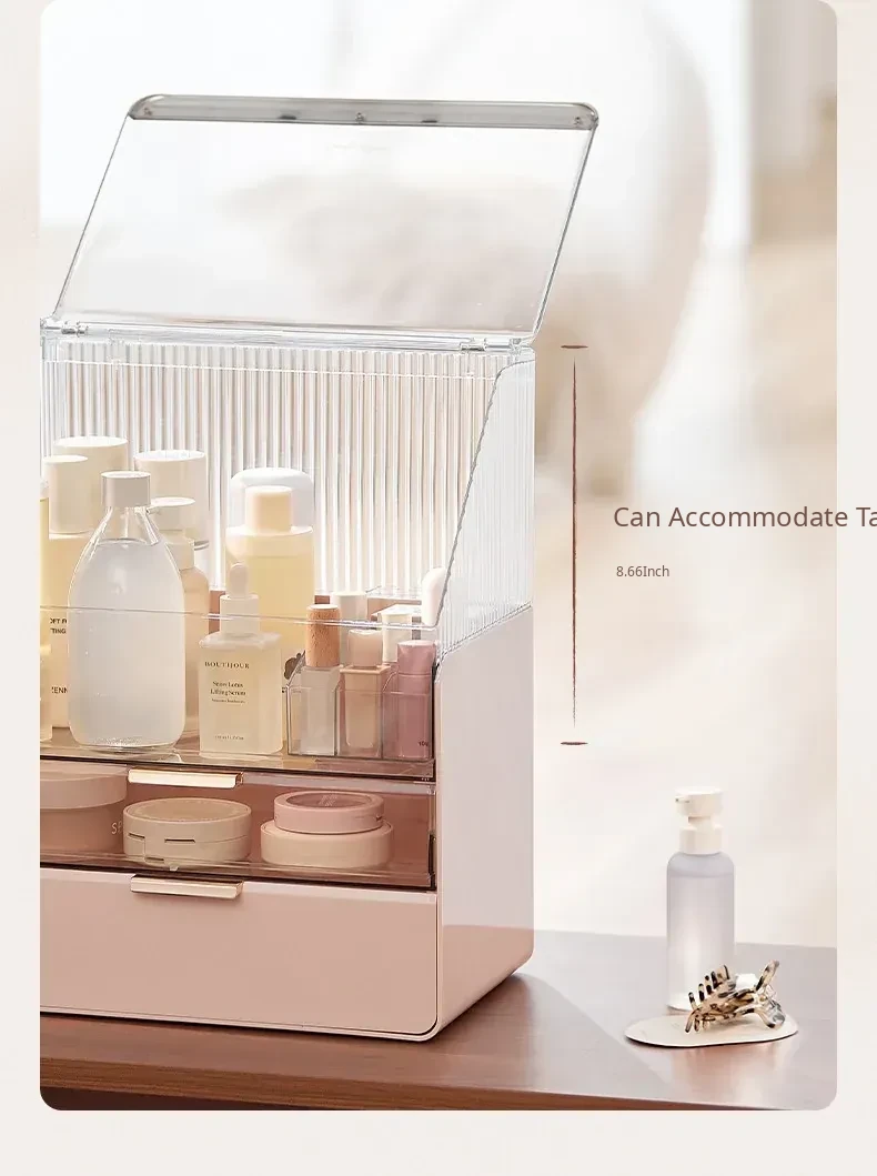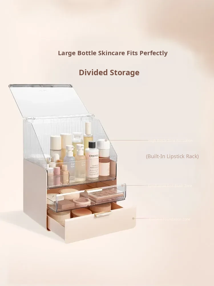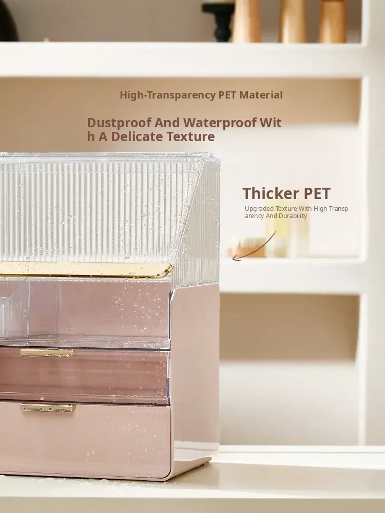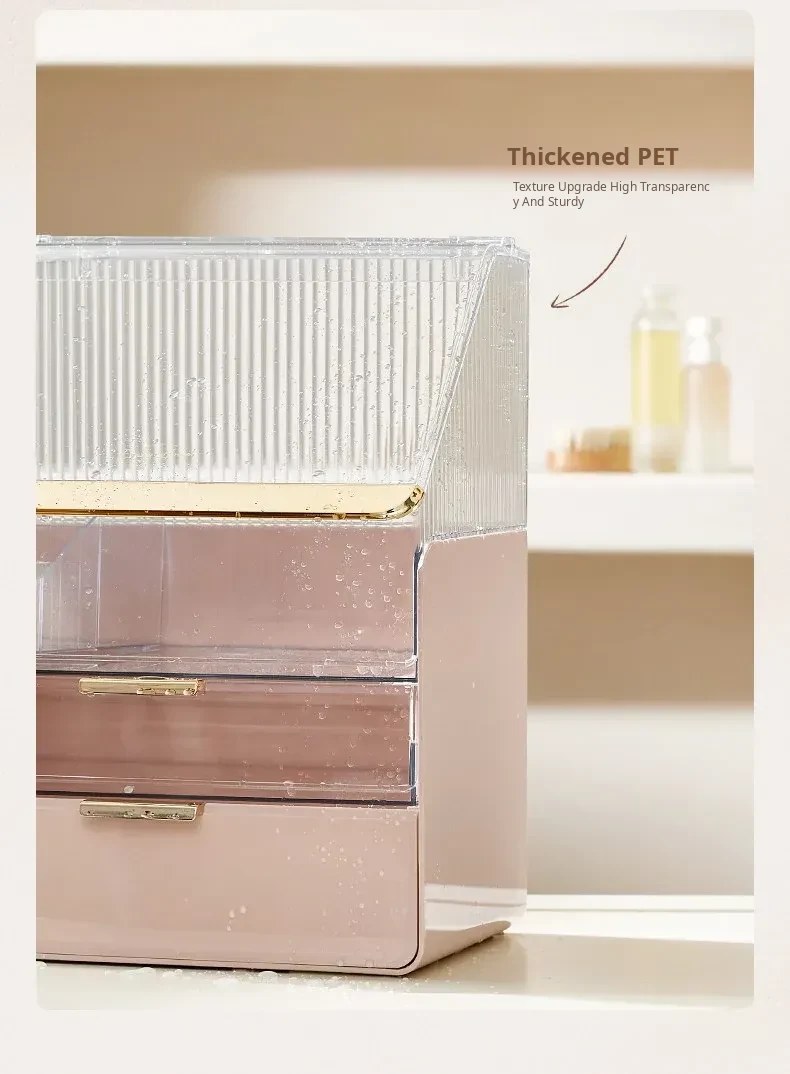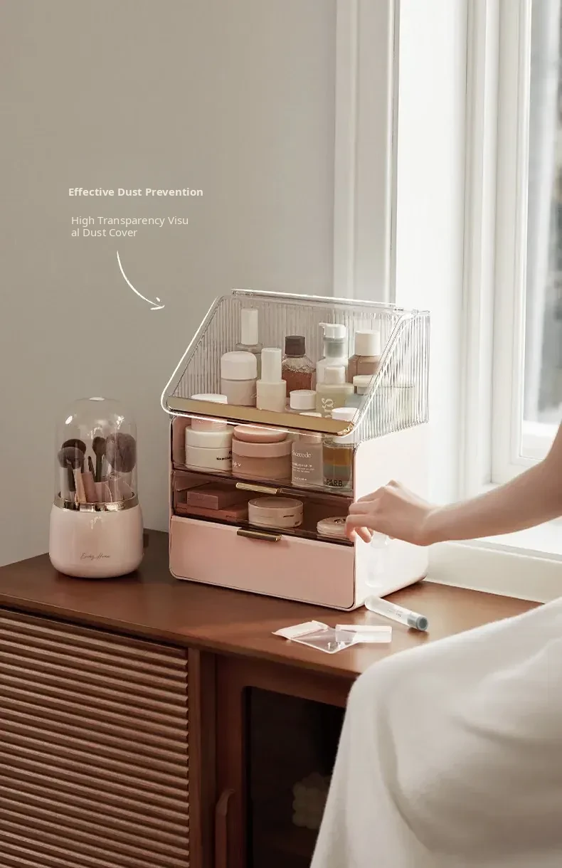 Transparent Makeup Organizer with Drawers - Stylish Desktop Storage for Cosmetics, Skincare Products, and Lipsticks - Dustproof and Practical Vanity Display Box