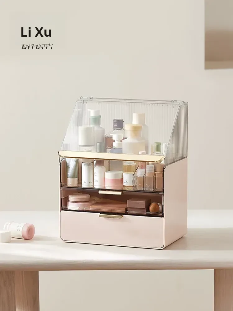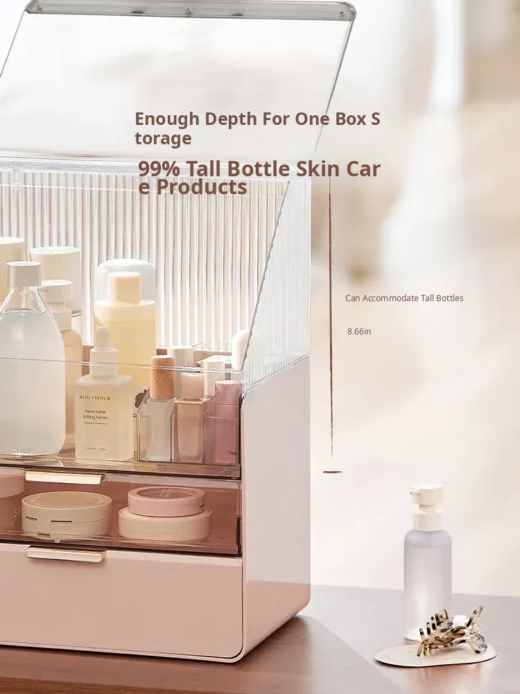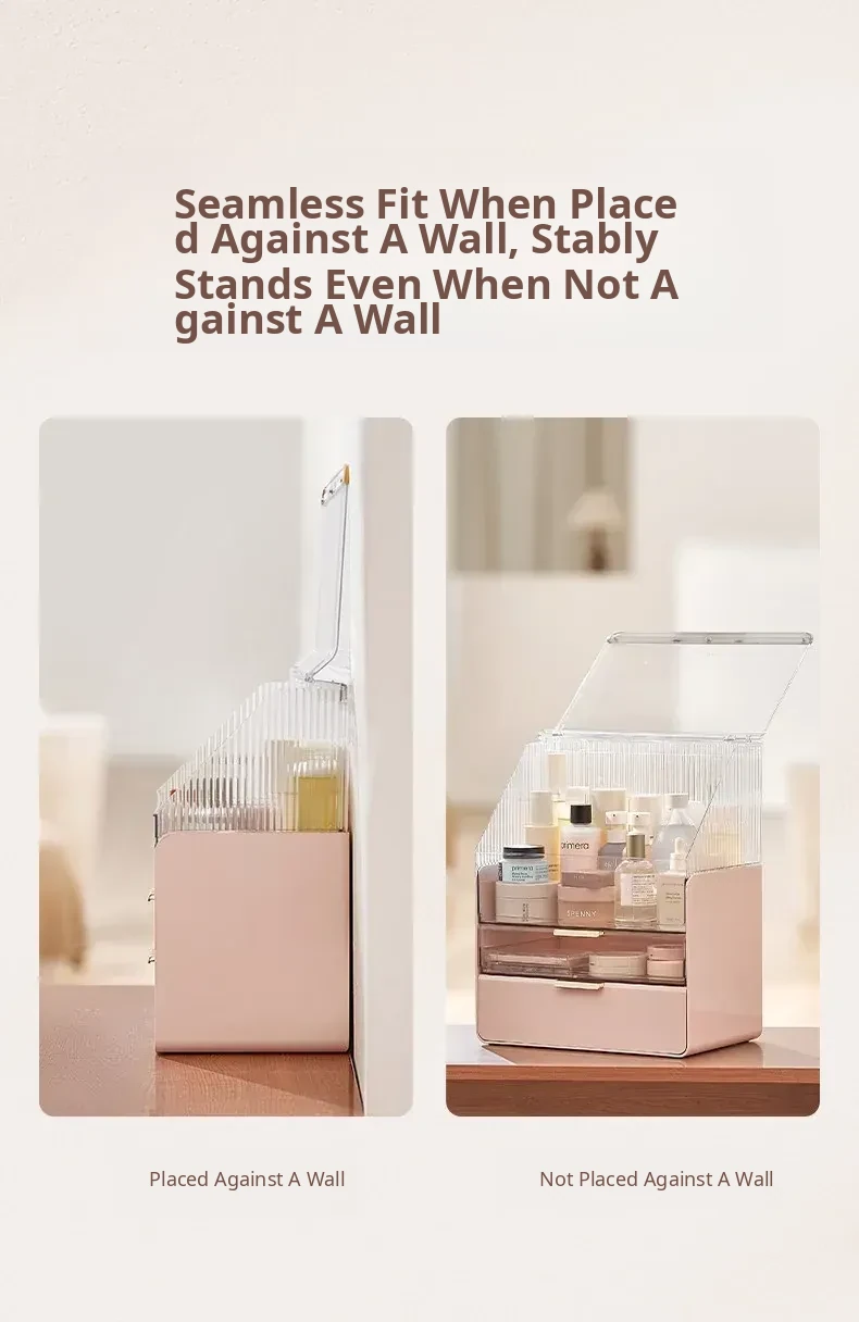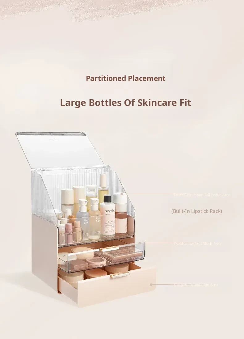 Transparent Makeup Organizer with Drawers - Stylish Desktop Storage for Cosmetics, Skincare Products, and Lipsticks - Dustproof and Practical Vanity Display Box