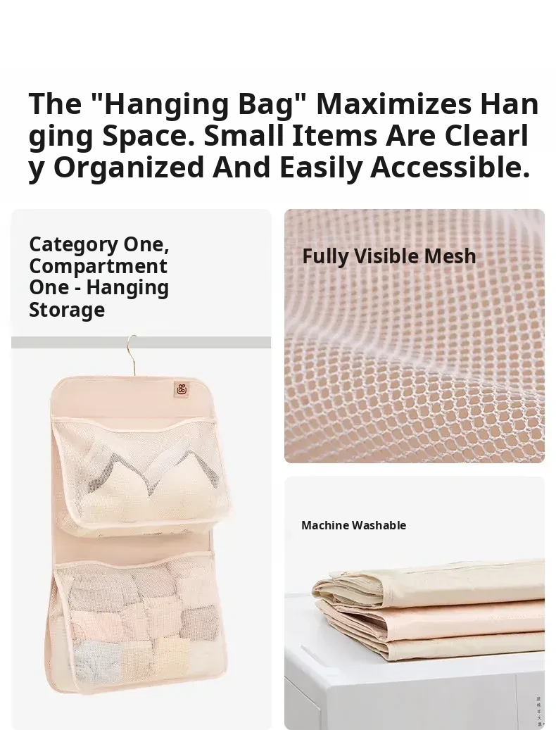 "Versatile Hanging Storage Bag for Socks and Underwear - Perfect for Dorms and Home Closets, Space-Saving Organizer Mesh Pocket"