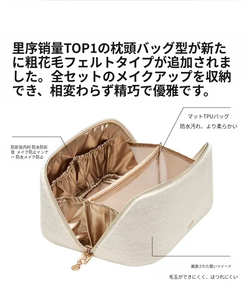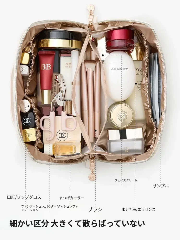リシュー メイクアップポーチ 2026年新作 大容量コスメ収納バッグ メイクブラシ収納可能 コンパクトで持ち運び便利な洗面ポーチ