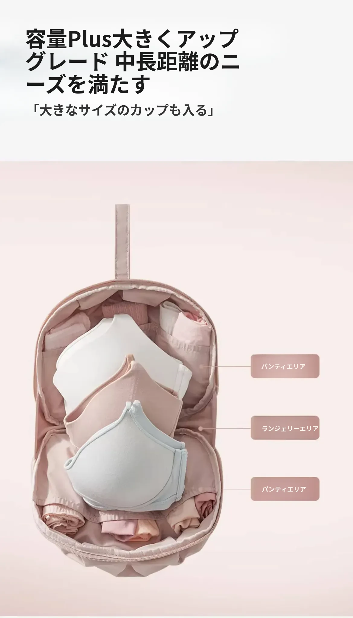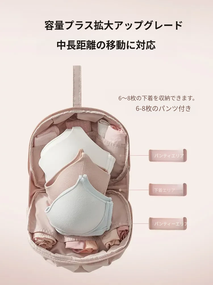 旅行に最適!3WAY内衣収納バッグ - 下着、靴下、ブラジャーがすっきり整理できる便利なポーチ。出張や旅行にぴったりなコンパクトで持ち運びやすいデザイン。あなたの大切な衣類を守るおしゃれな収納ソリューション!