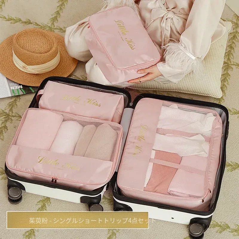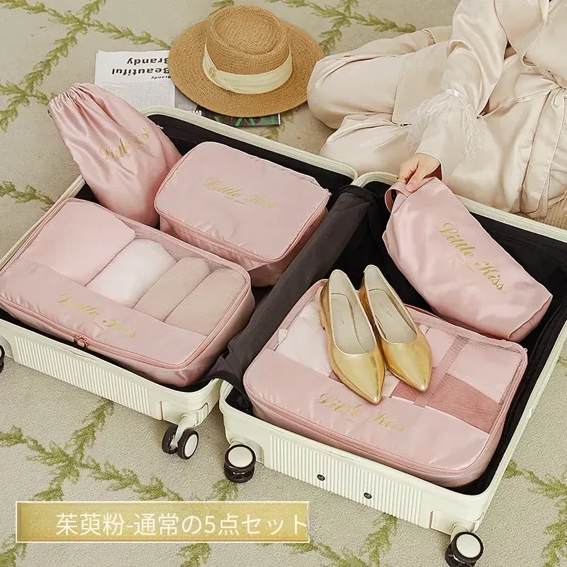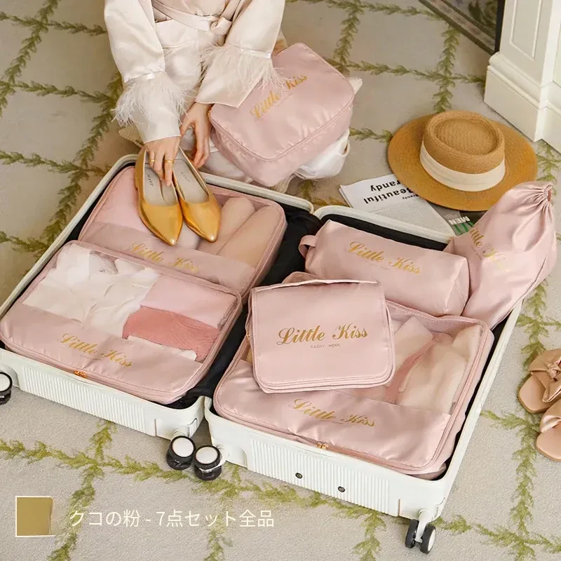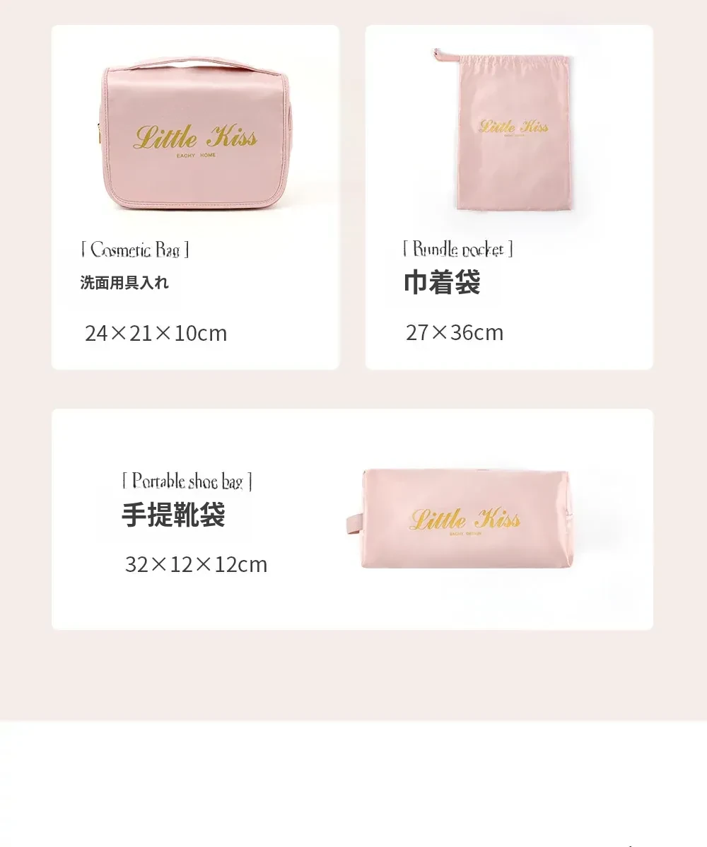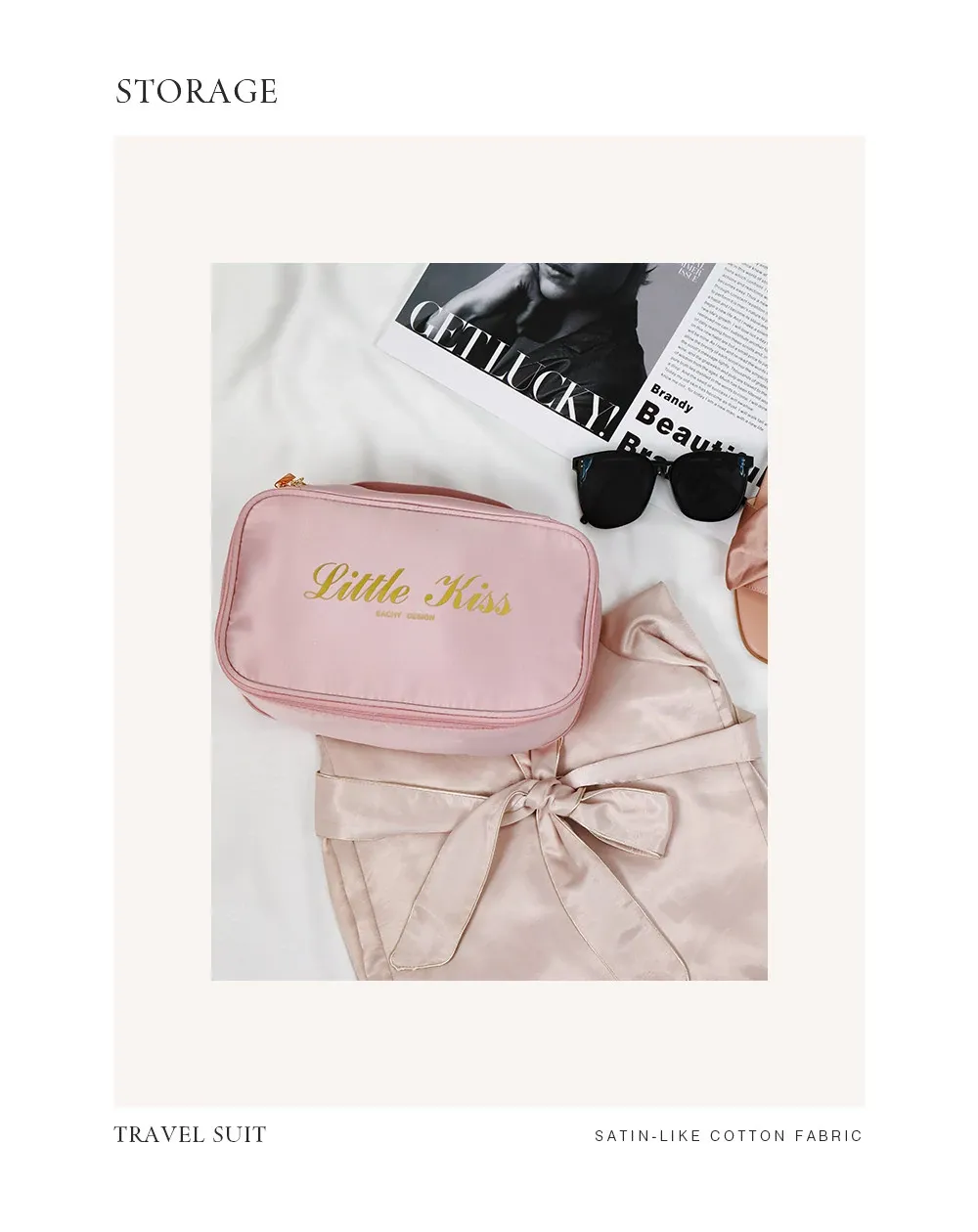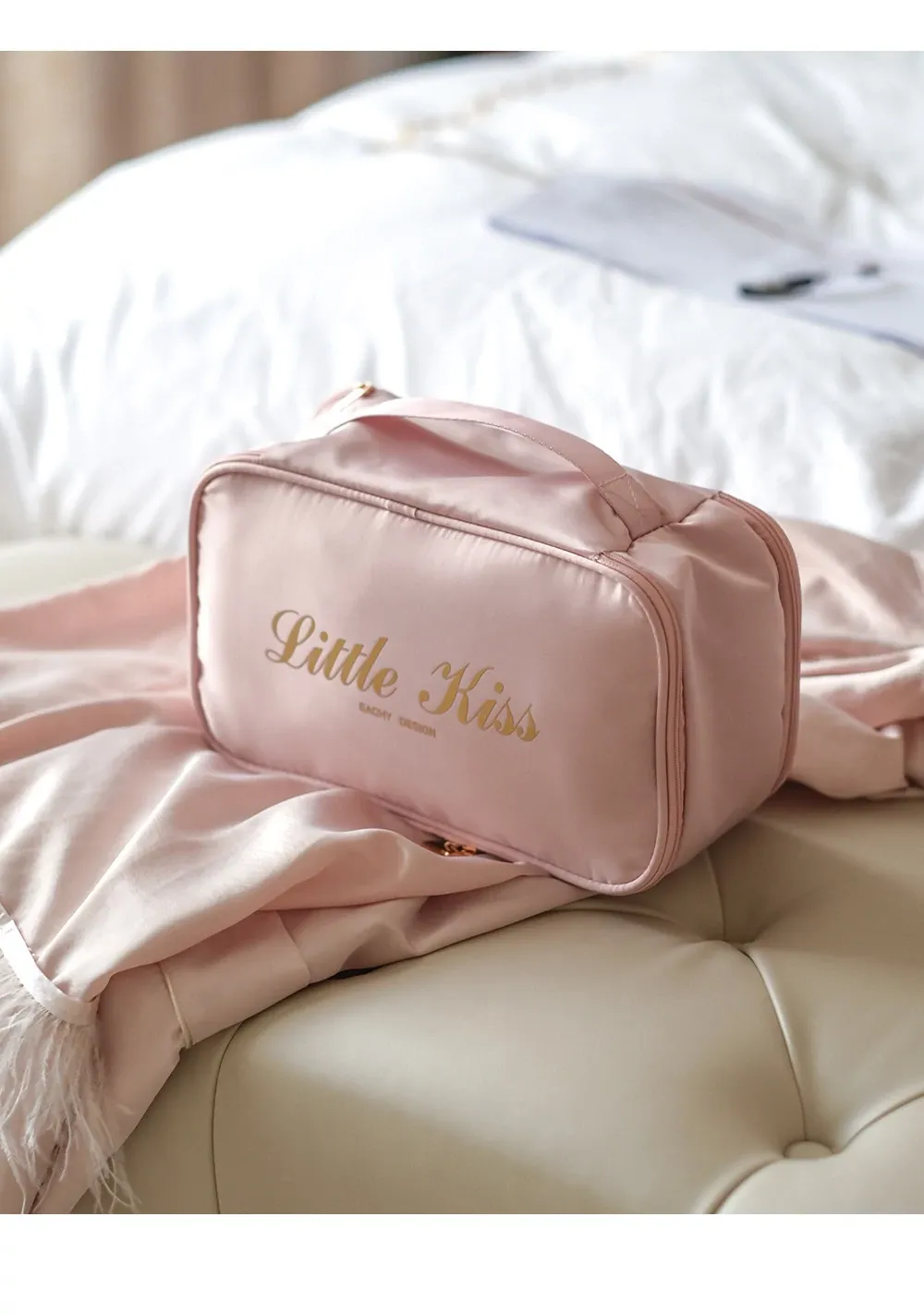 【枕型下着バッグ】-バラ粉色
