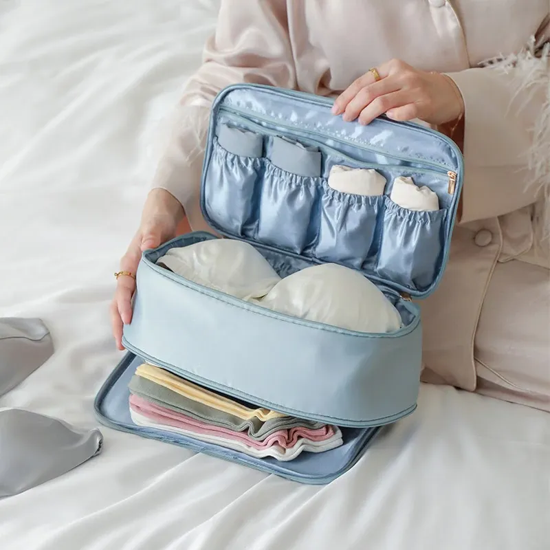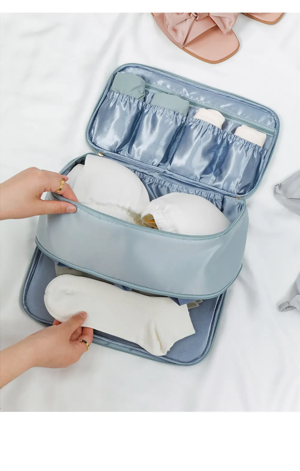 【ダブルレイヤー下着バッグ】-霧青色