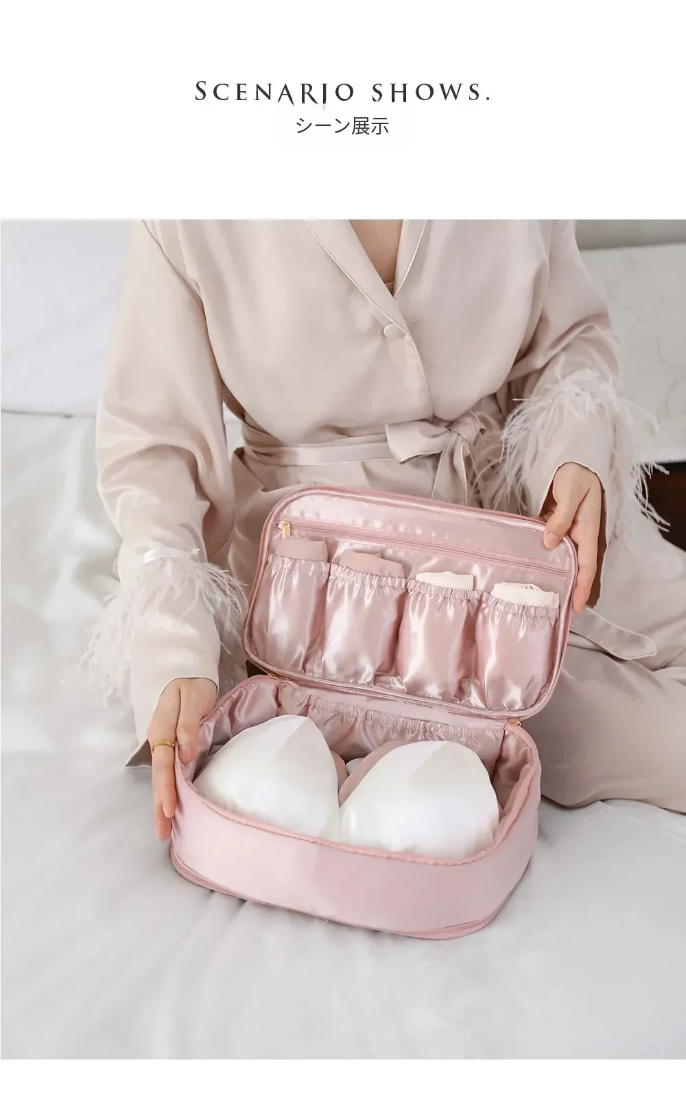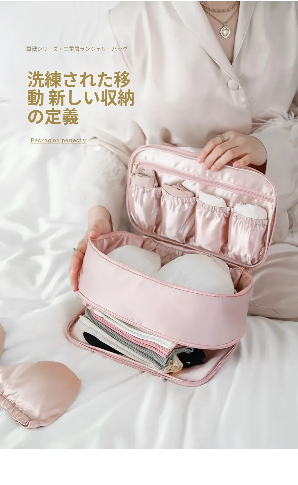 【ダブルレイヤー下着バッグ】-バラ色