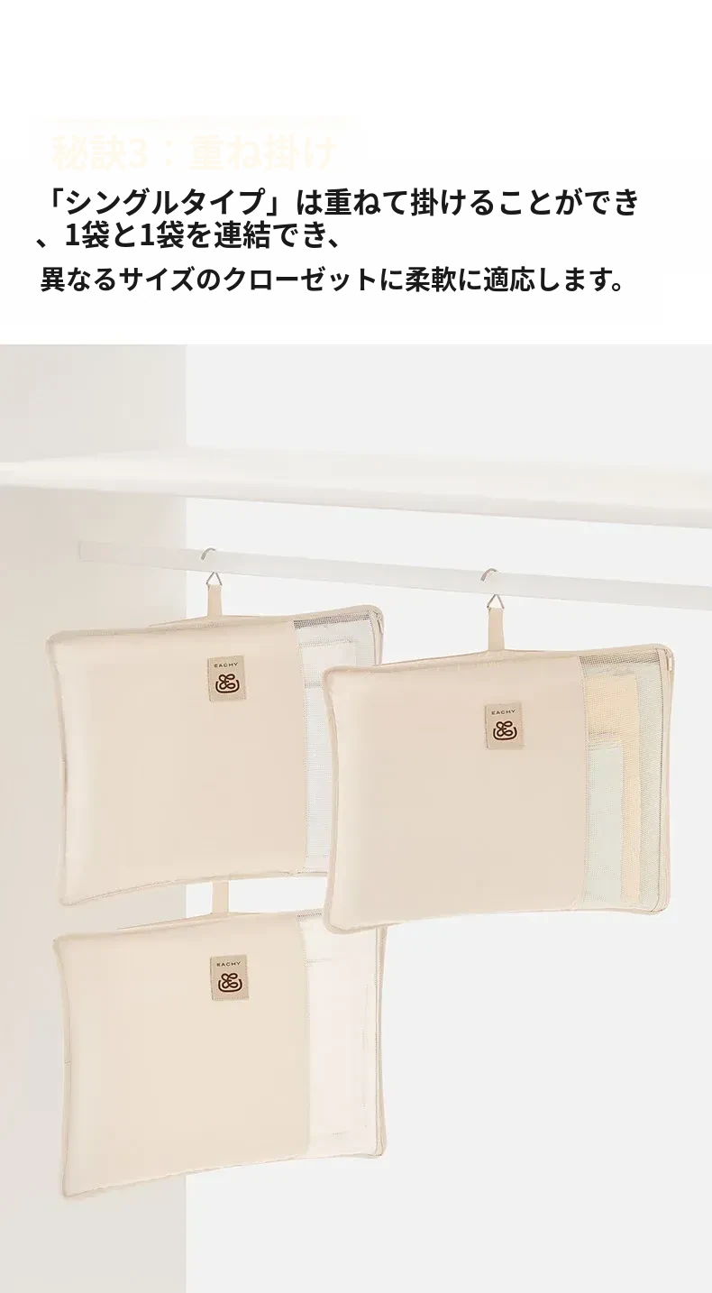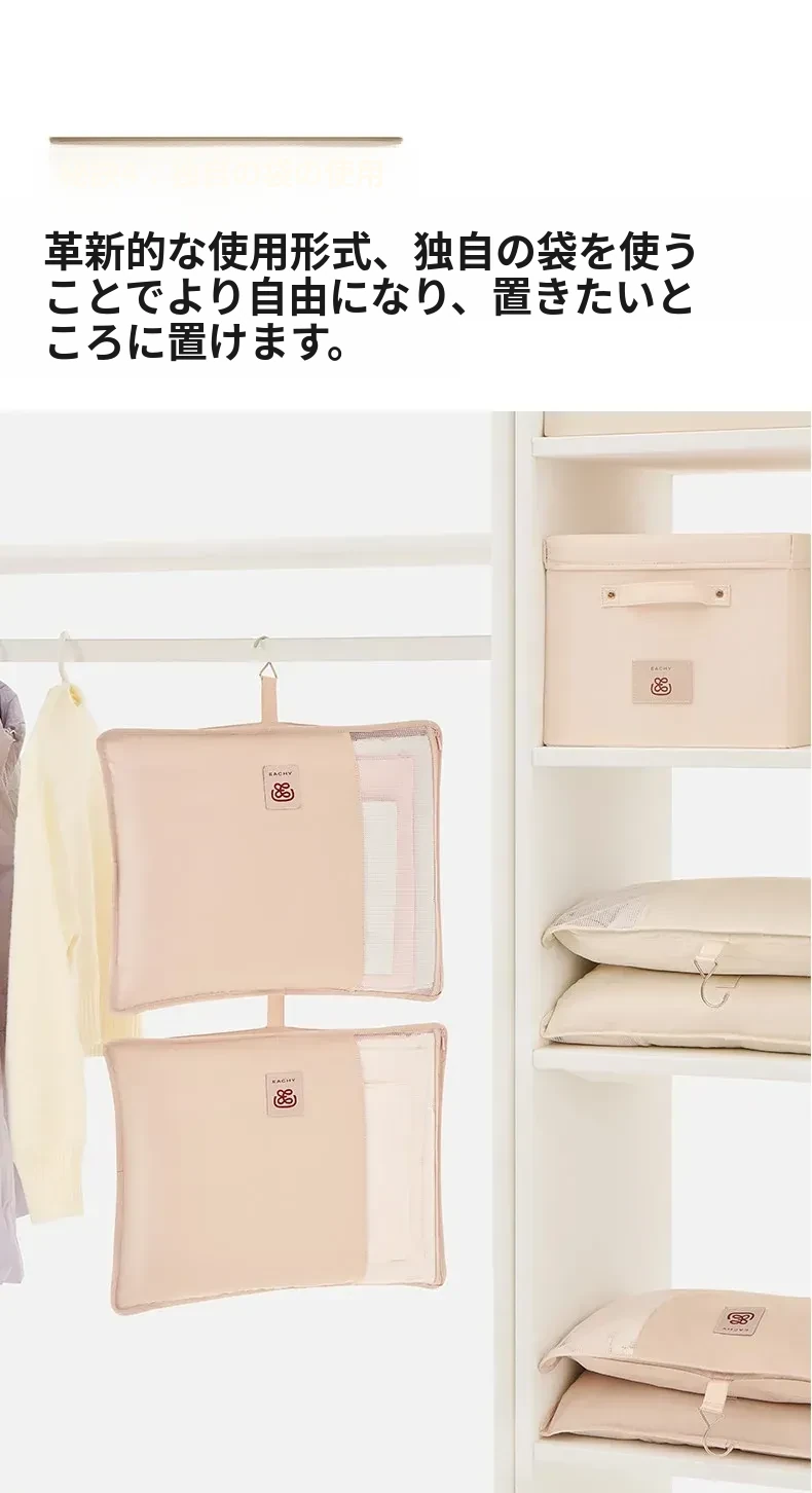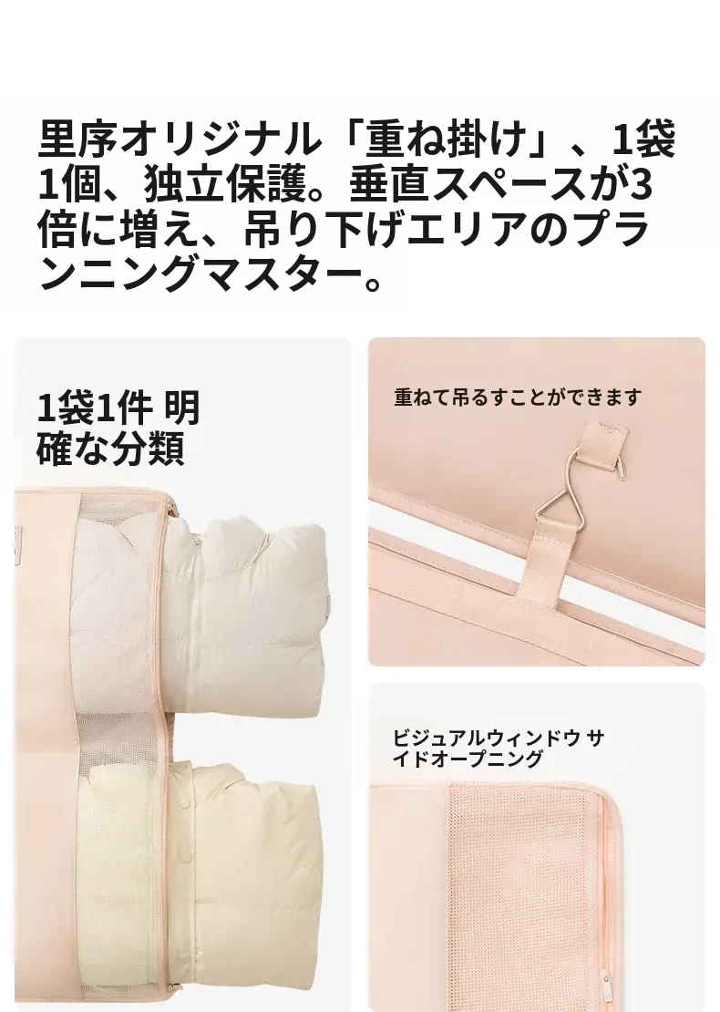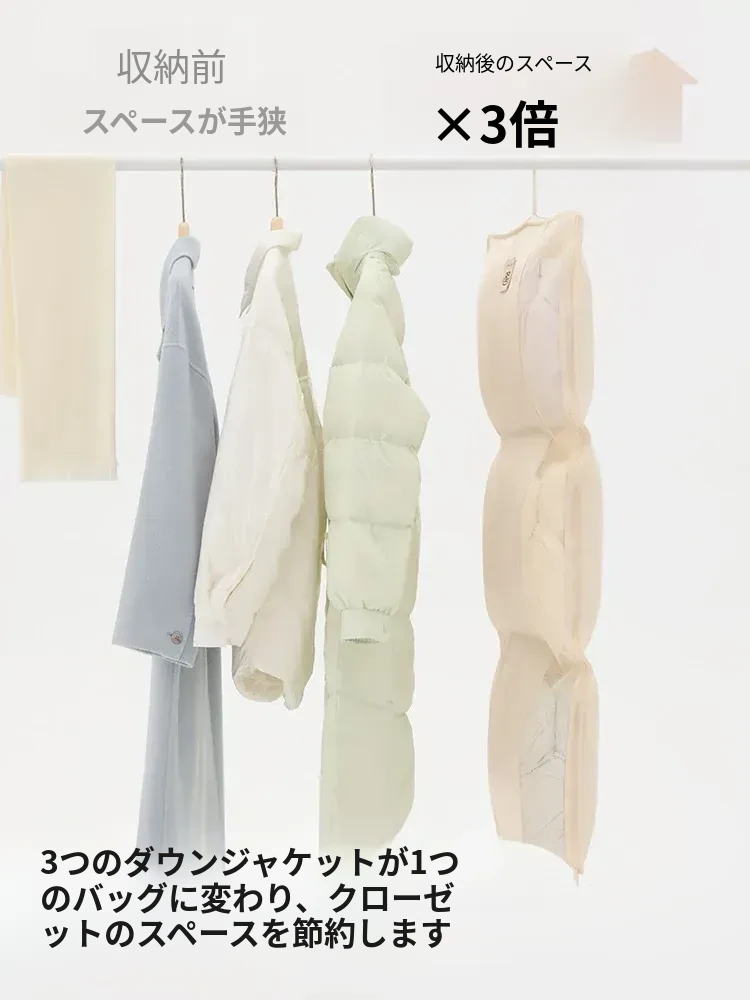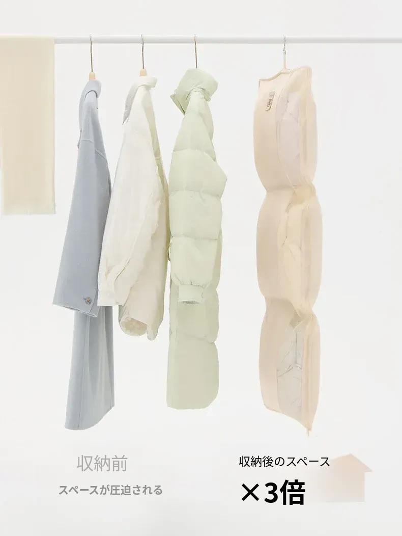 リシュー 持ち運び便利なダウンジャケット収納袋4点セット - 寝室や宿舎に最適な壁掛け収納ハンガー!お部屋をスッキリ整理整頓!