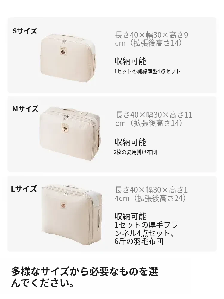 4点セット収納バッグ|シーツ・カバー・毛布・ダウンジャケット・衣類をスッキリ整理!旅行や家庭で大活躍の便利な収納アイテム!