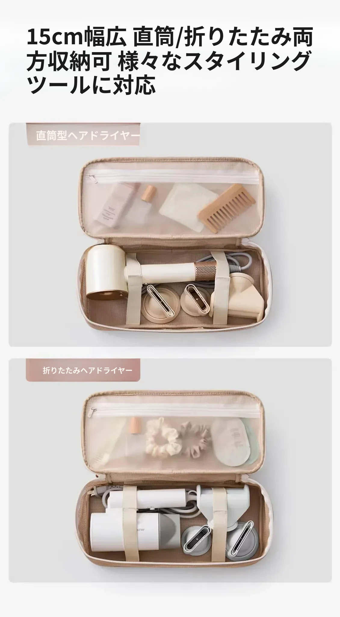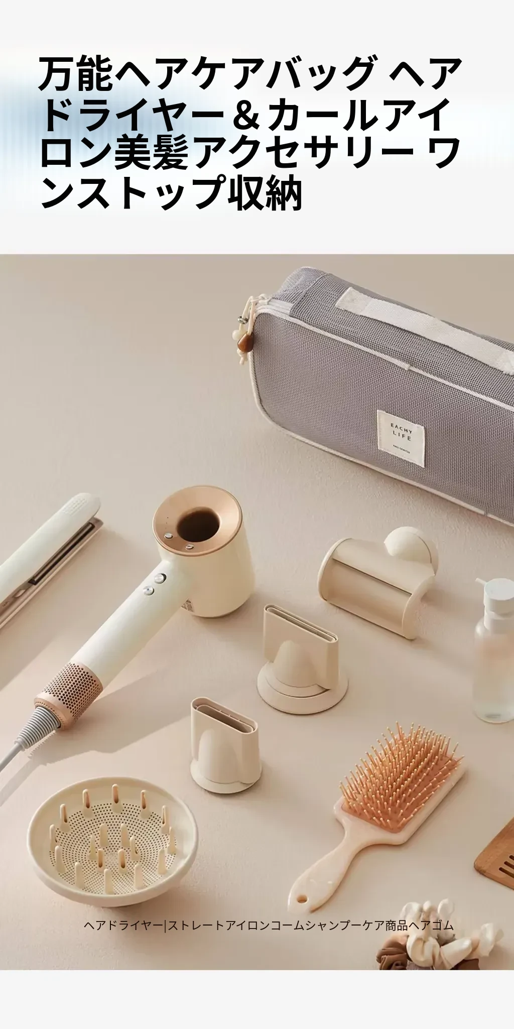ダイソン用ヘアドライヤー収納バッグ - 旅行に最適なスタイリッシュな収納ポーチ、巻き髪アイロンも収納可能!整理整頓で美しさを保つ必需品!