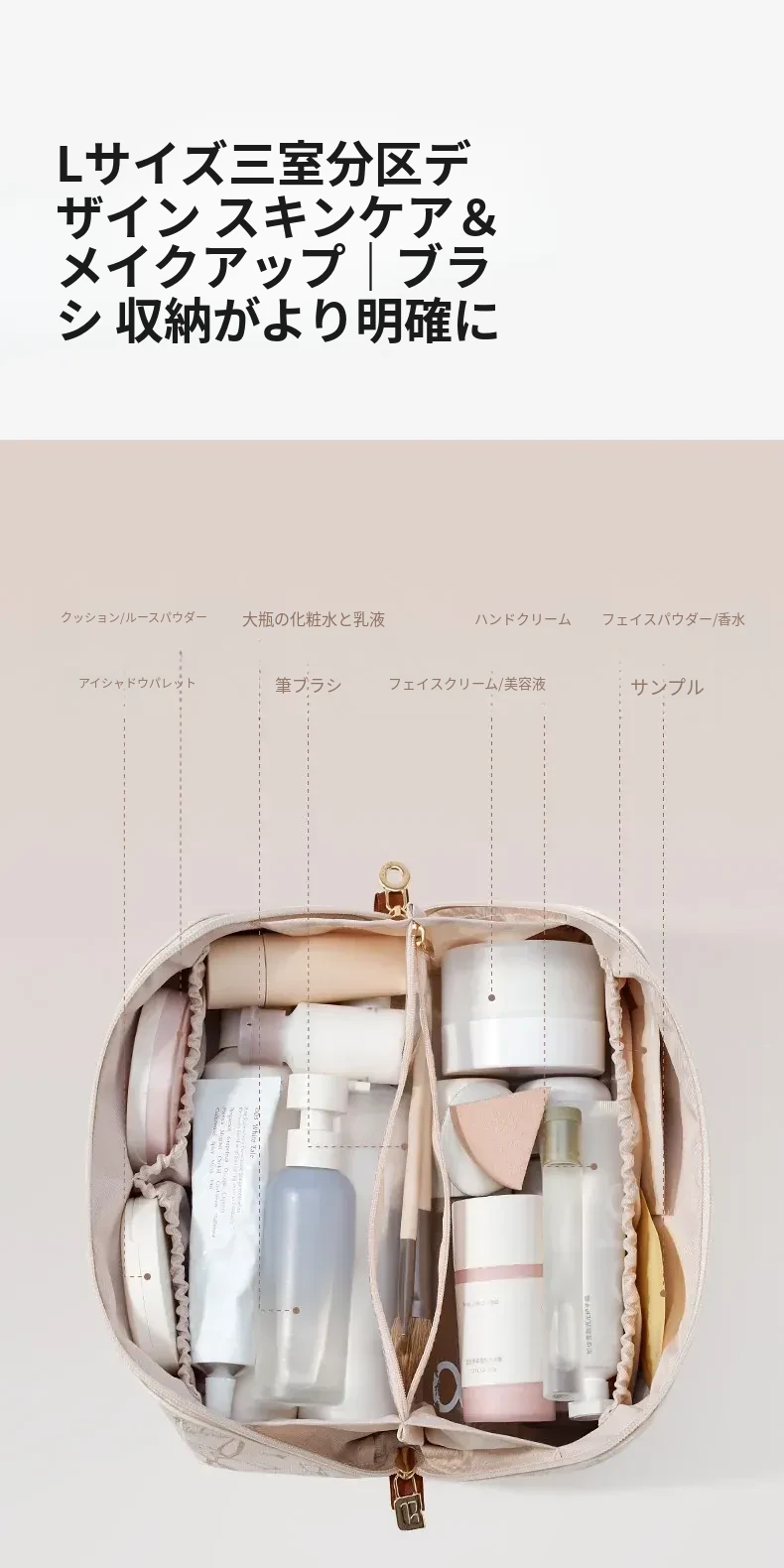 リズール化粧ポーチ - 2026年新作!軽やかな高級感で女性にぴったりの大容量・仕分け収納。持ち運びに便利なデザインで、あなたのビューティーアイテムをスタイリッシュに整理!