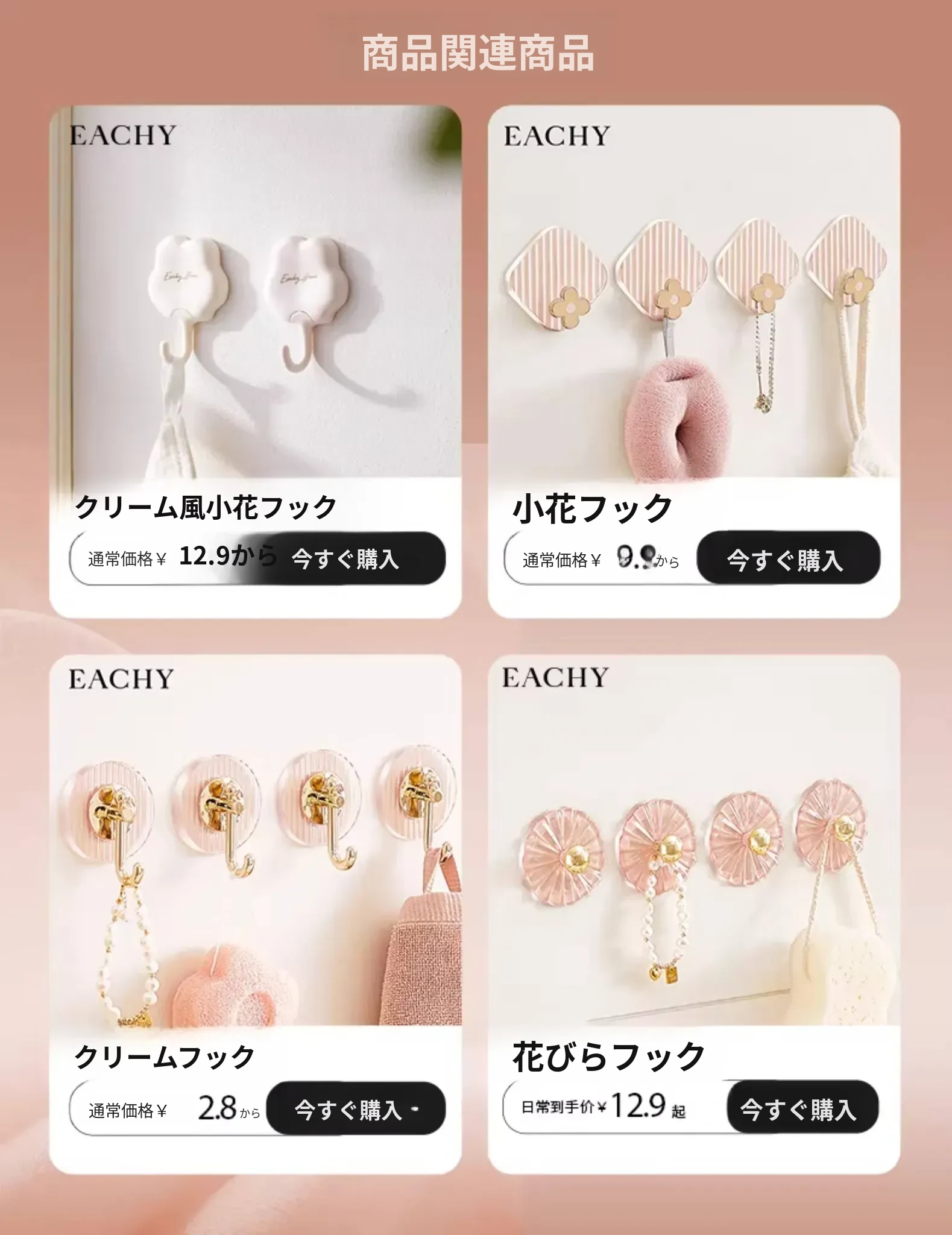 クリーム風フック-8個入り【フックが必要な場合は別途購入】