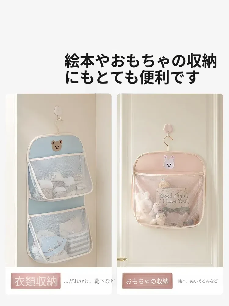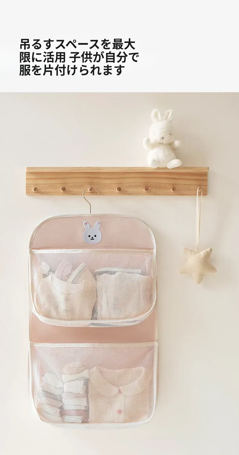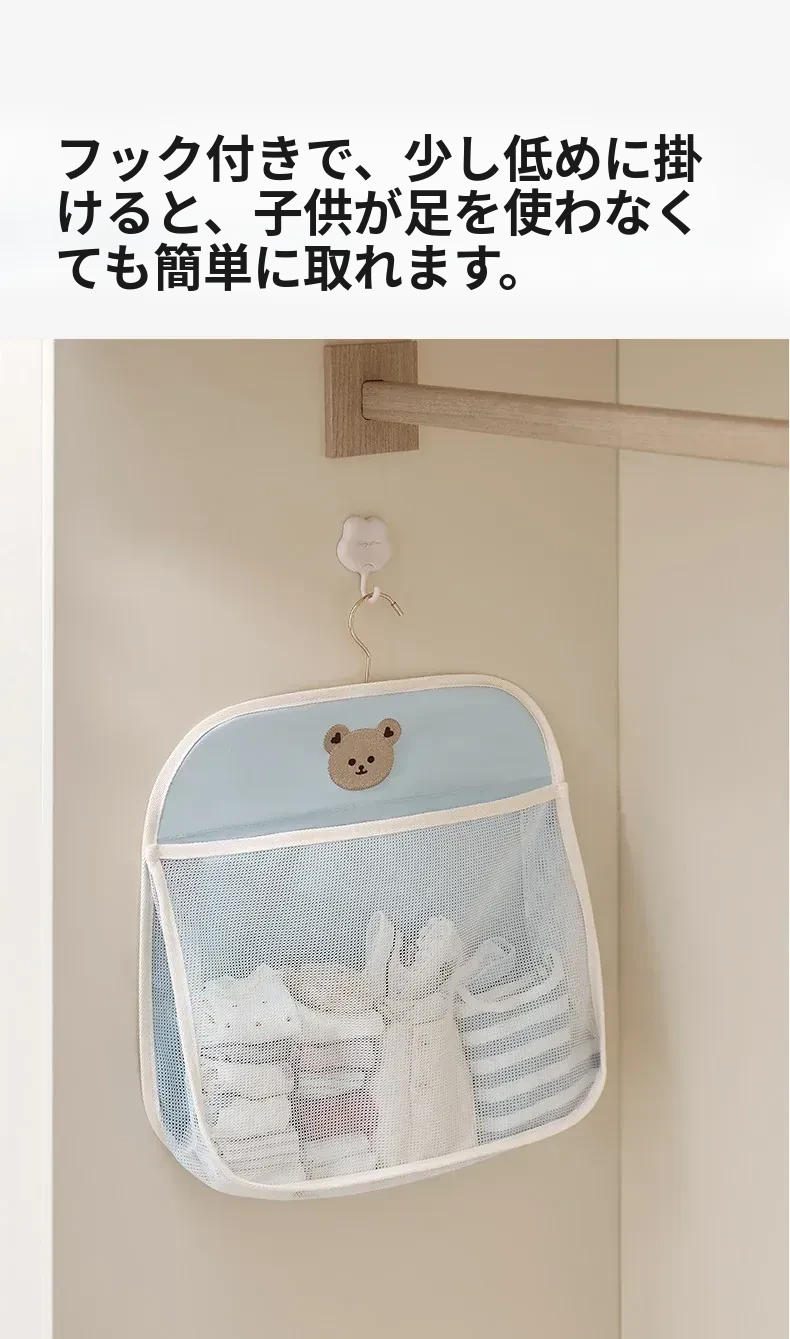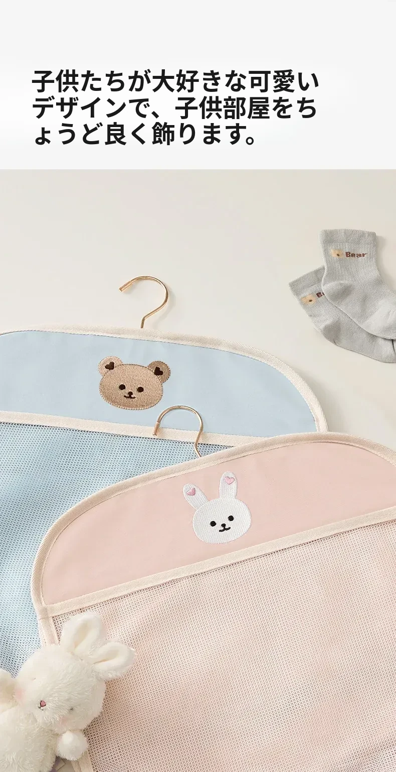 リスウ子供用靴下収納ハンガーポケット - おもちゃや衣類もすっきり整理!家庭用クローゼットに最適な吊り下げ収納のマジックアイテム!