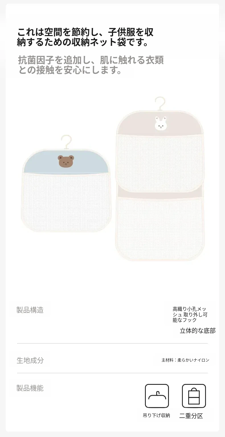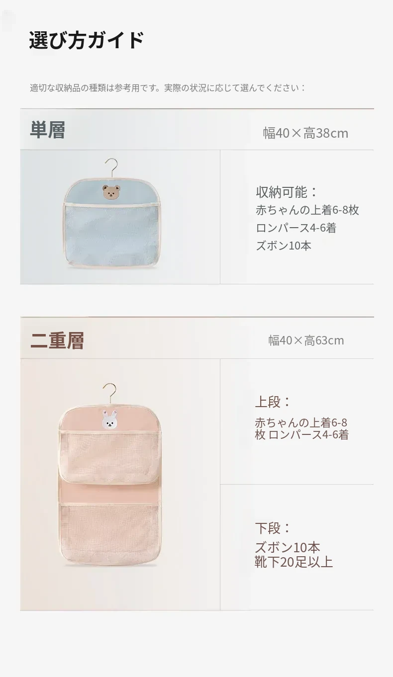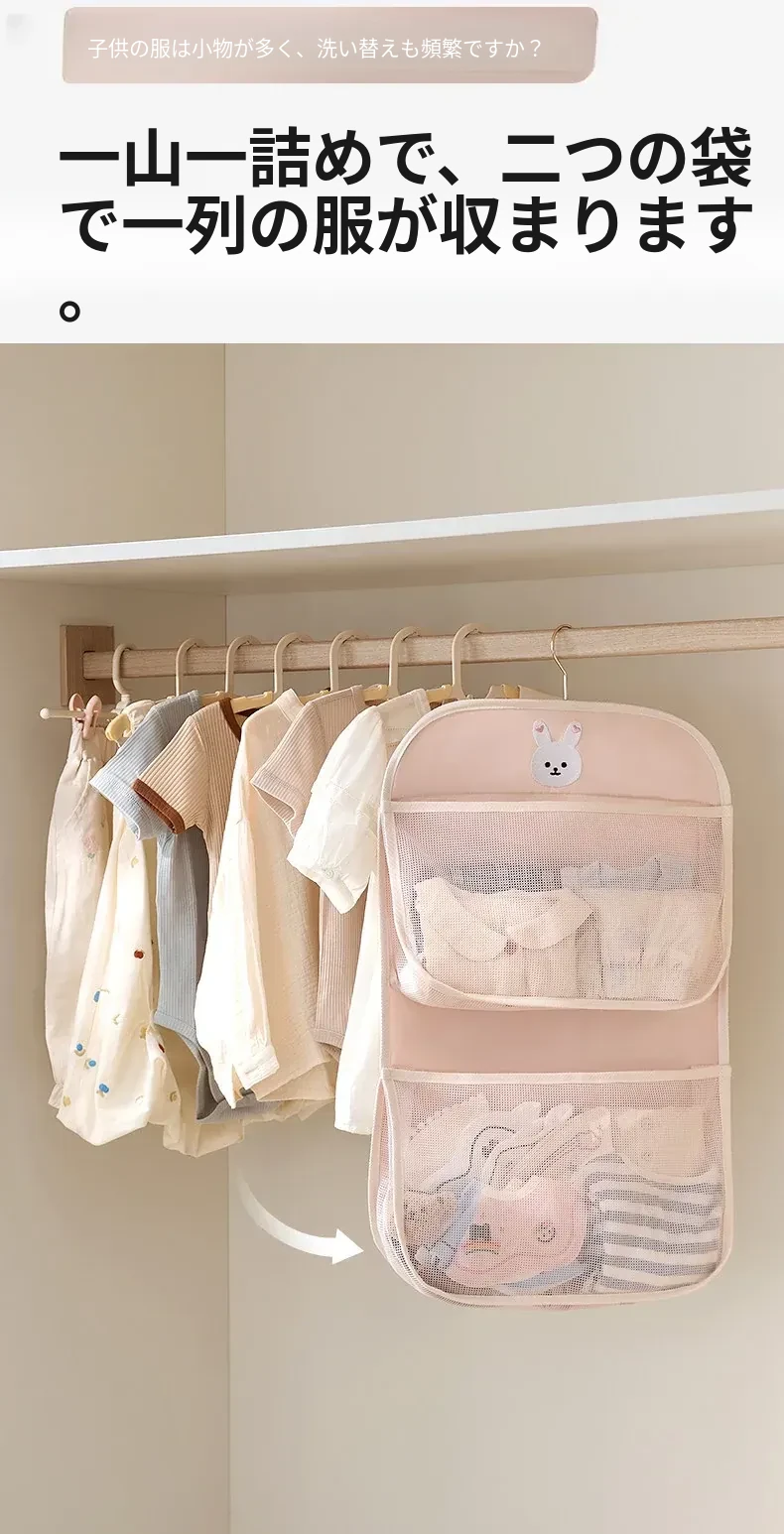 リスウ子供用靴下収納ハンガーポケット - おもちゃや衣類もすっきり整理!家庭用クローゼットに最適な吊り下げ収納のマジックアイテム!