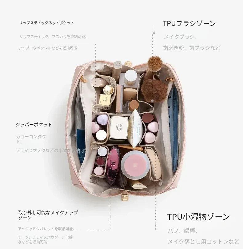 リズオ大容量化粧ポーチ2026年新作!高級感溢れる旅行用化粧品収納バッグ、防水設計で安心!おしゃれに持ち運べる必須アイテム!