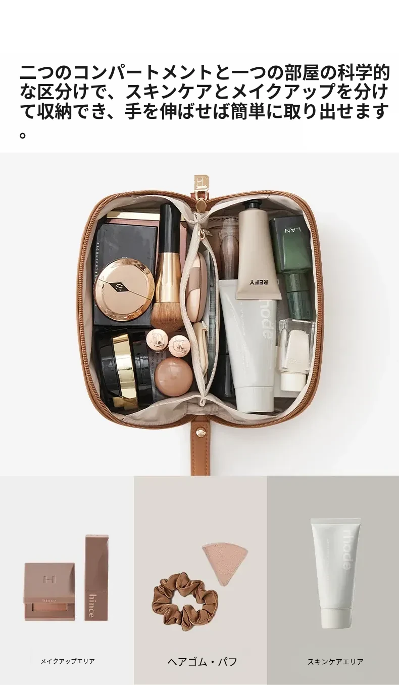 リシオ ポータブル化粧ポーチ 女性用 2026年新作 高級化粧品収納バッグ 旅行用防水洗面用具ポーチ おしゃれで便利、外出時の必需品!
