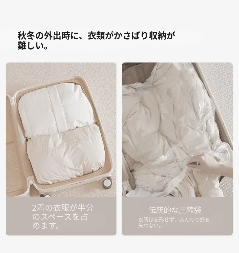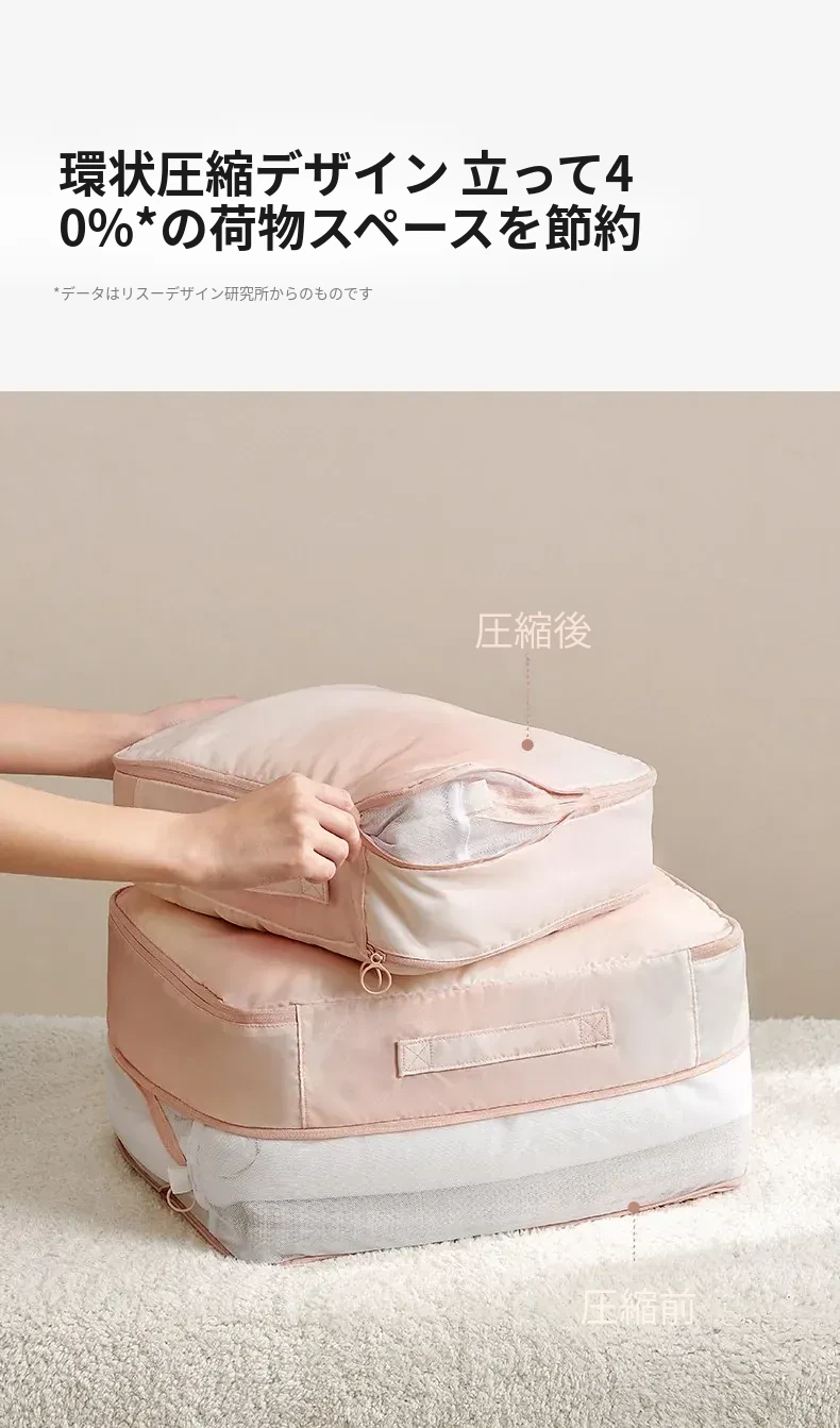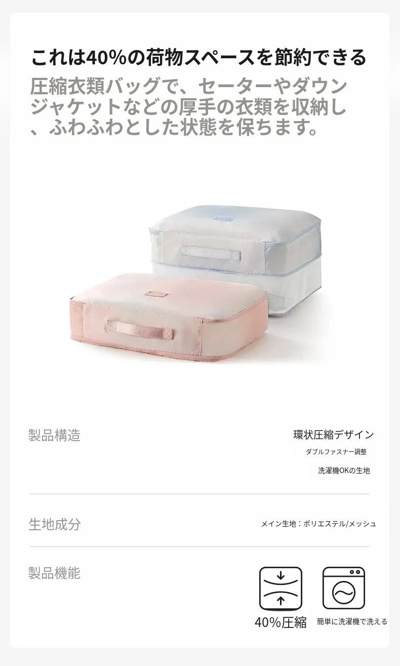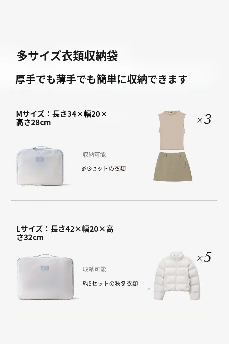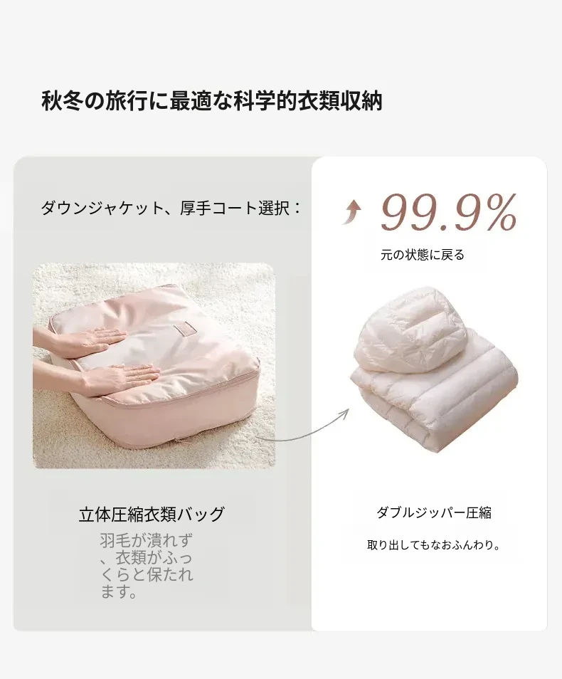 旅行に最適!リュシオの圧縮収納袋 - ダウンジャケットや衣類をスマートに整理!出張や旅行にぴったりなコンパクトで持ち運びやすいアイテム。整理整頓でストレスフリーな旅を楽しもう!