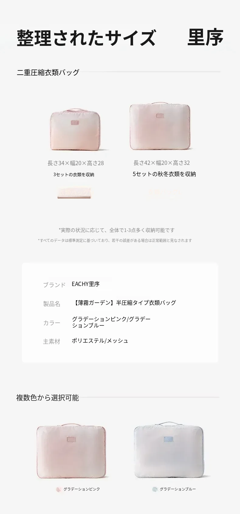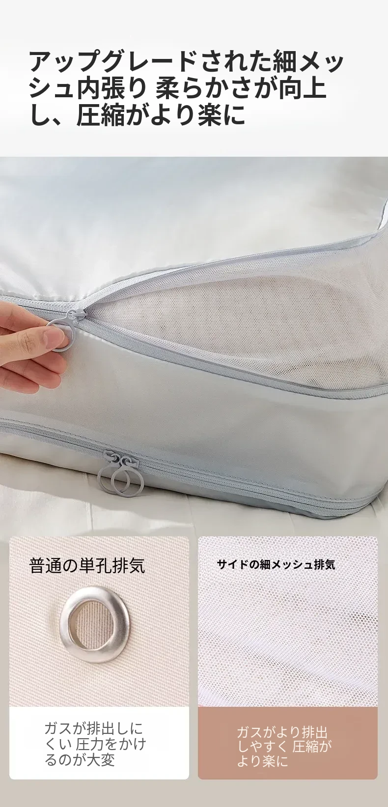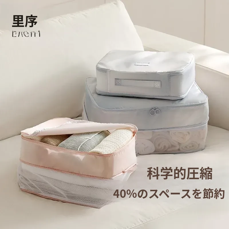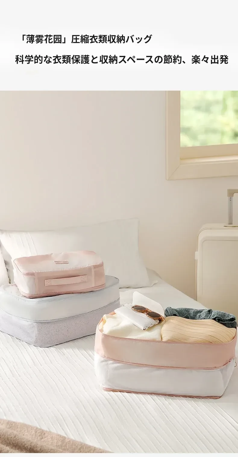 旅行に最適!リュシオの圧縮収納袋 - ダウンジャケットや衣類をスマートに整理!出張や旅行にぴったりなコンパクトで持ち運びやすいアイテム。整理整頓でストレスフリーな旅を楽しもう!