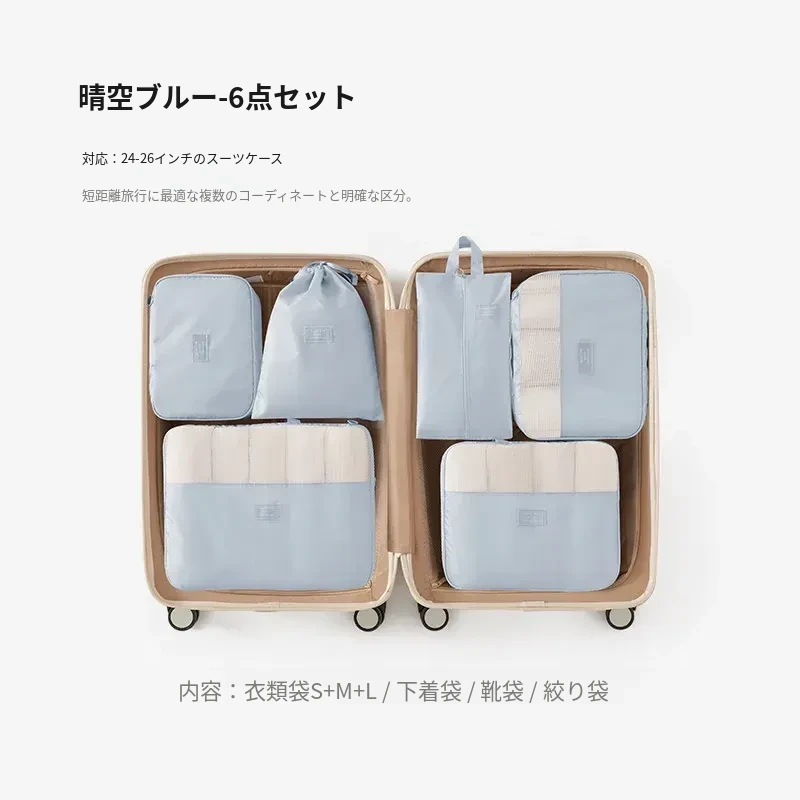 6点セット - 晴空ブルー (24-26インチのスーツケースに適しています)
