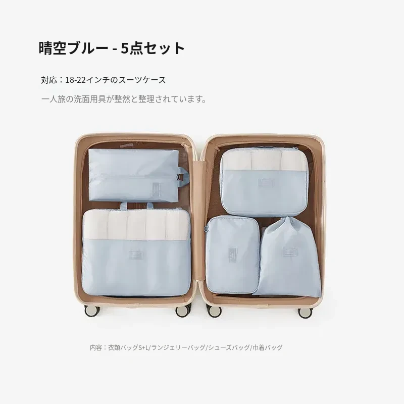5点セット - 晴空ブルー (18-22インチのスーツケースに適しています)