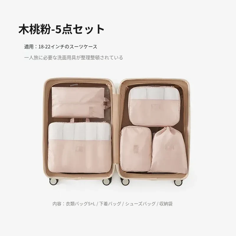5点セット - 木桃ピンク (18-22インチのスーツケースに適しています)