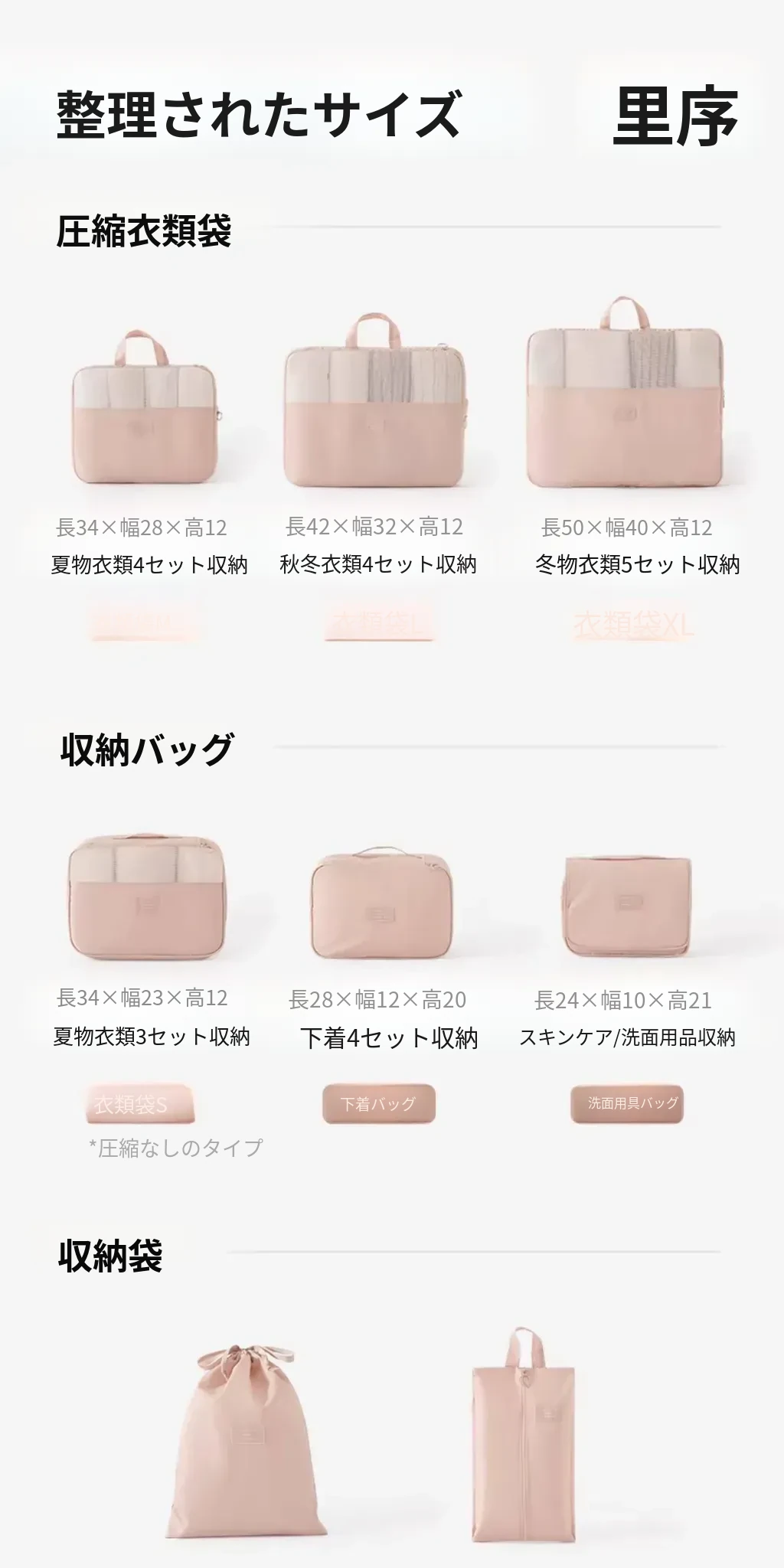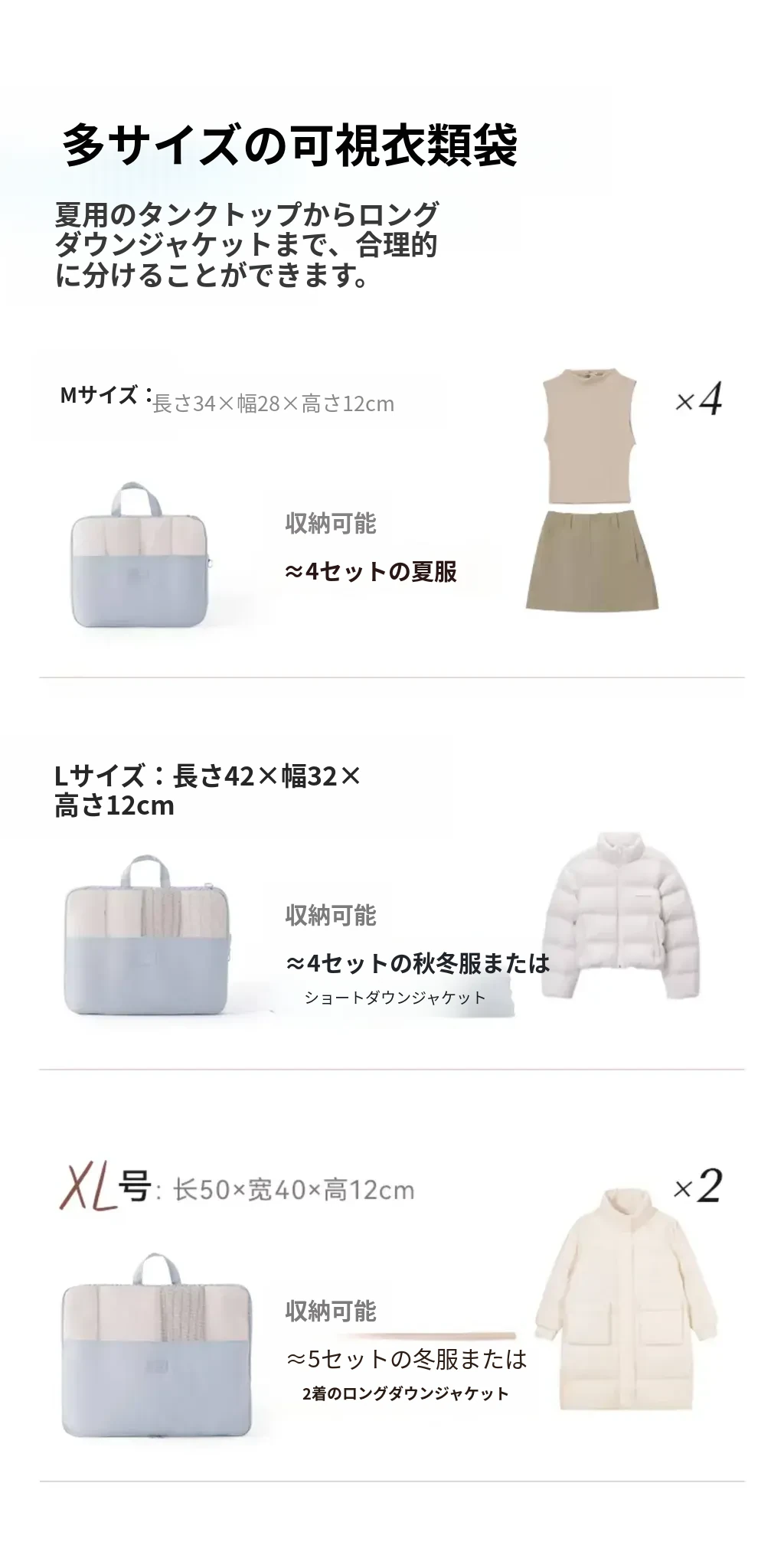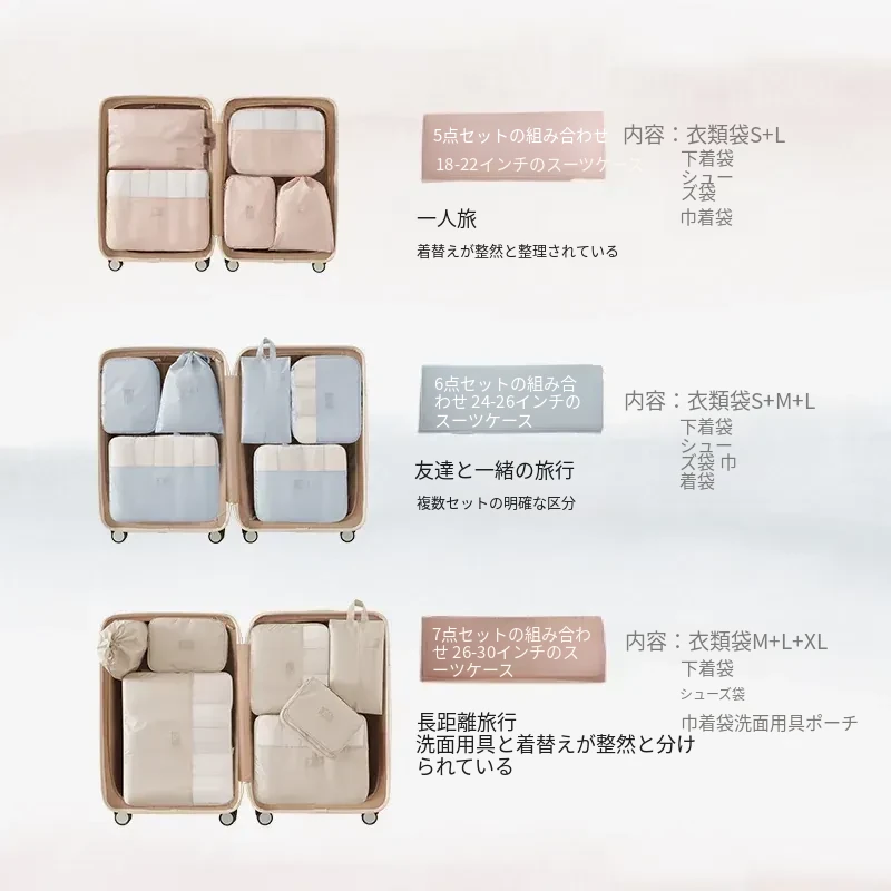 旅行の必需品!里序圧縮収納袋セット - スーツケース内のダウンジャケットや衣類、下着をスッキリ整理!出張や旅行に最適な分け収納で、快適な移動をサポートします。