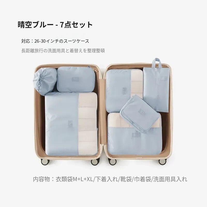 7点セット - 晴空ブルー (26-28インチのスーツケースに適しています)
