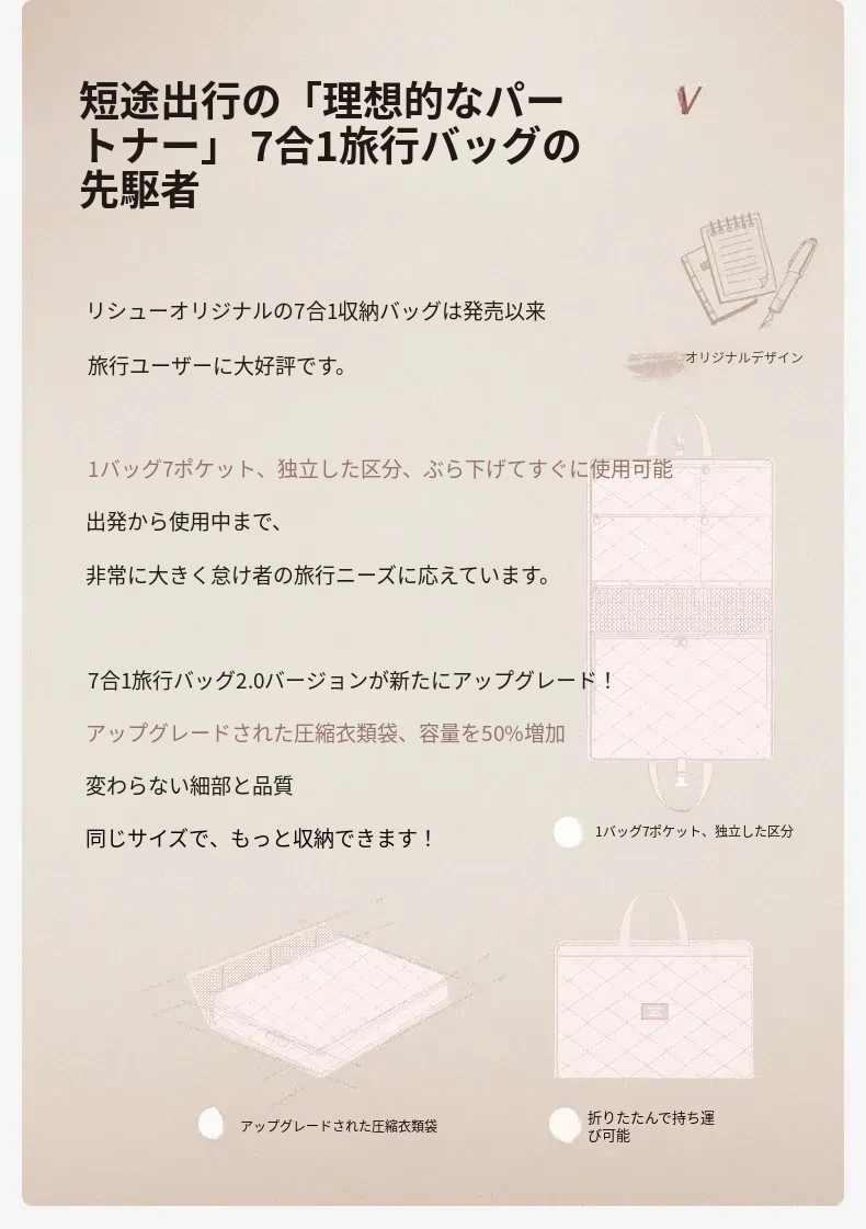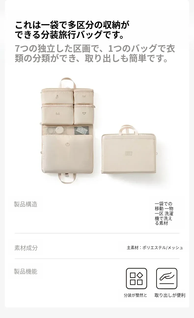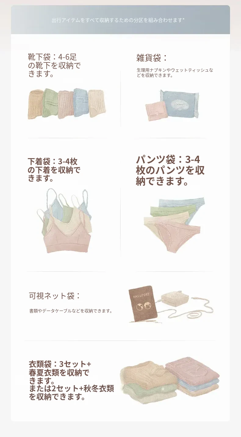 里序一袋式旅行収納バッグ|便利で大容量、出張や旅行に最適!下着や靴下をすっきり整理できる、忙しいあなたの強い味方!